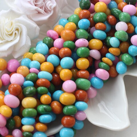 Натуральный агат, тонированный в насыщенный оттенок, придаёт бусинам выразительность и глубину. Благодаря форме каждая бусина уникальна — со своей фактурой, переливами и лёгкой асимметрией.