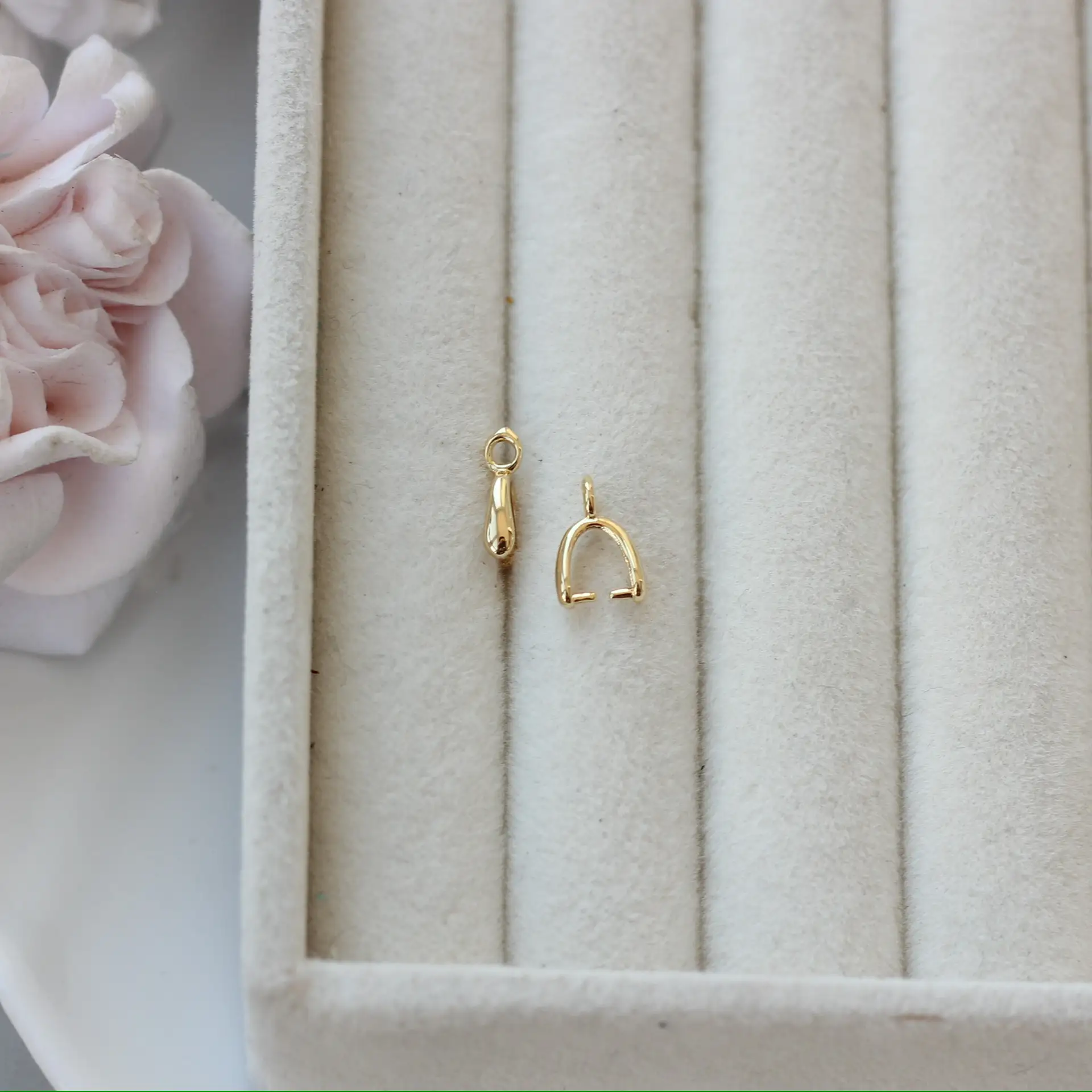 Аккуратный бейл — незаменимый элемент для крепления подвесок к цепочкам, шнурам или браслетам. Благодаря лаконичному дизайну он гармонично вписывается в любые украшения, не перетягивая внимание на себя.