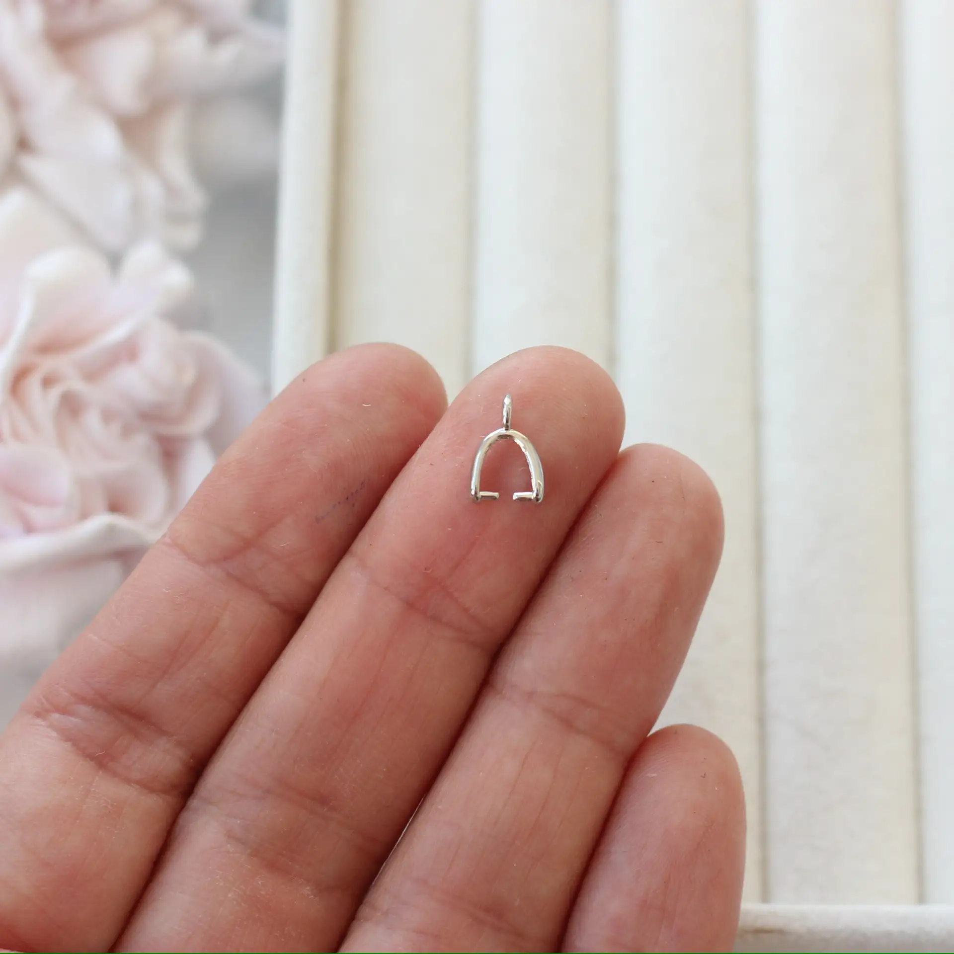 ВНИМАНИЕ: Возможны незначительные технологические особенности поверхности (микроцарапины, неровности покрытия), которые не влияют на внешний вид изделия в готовом украшении.Бейлы для украшений. Бейл для подвесок и кулонов с фианитами.