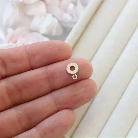 Аккуратный бейл — незаменимый элемент для крепления подвесок к цепочкам, шнурам или браслетам. Благодаря лаконичному дизайну он гармонично вписывается в любые украшения, не перетягивая внимание на себя.