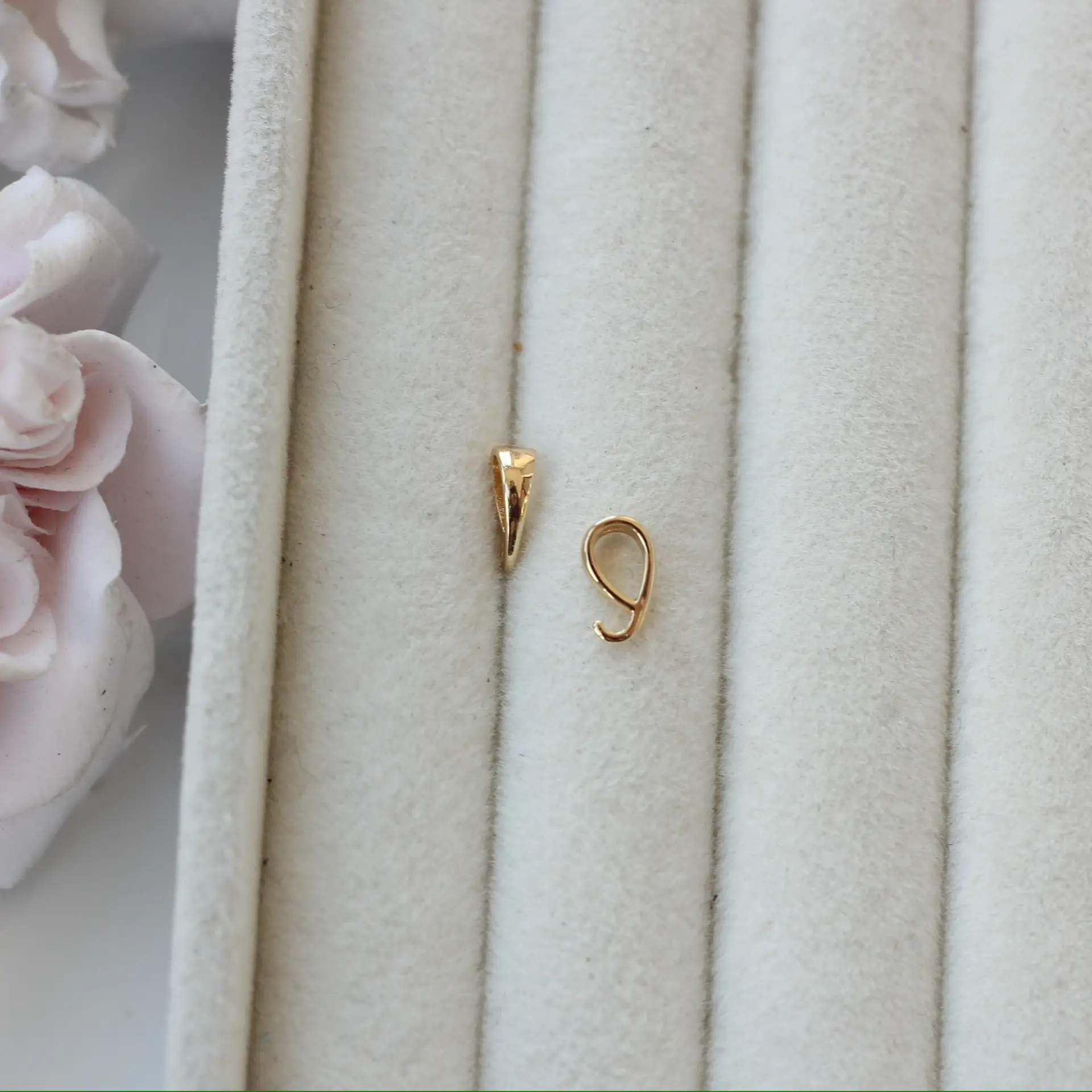 Аккуратный бейл — незаменимый элемент для крепления подвесок к цепочкам, шнурам или браслетам. Благодаря лаконичному дизайну он гармонично вписывается в любые украшения, не перетягивая внимание на себя.
