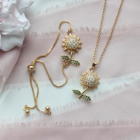 Браслет с подсолнухом безразмерный, позолота, СГ059
