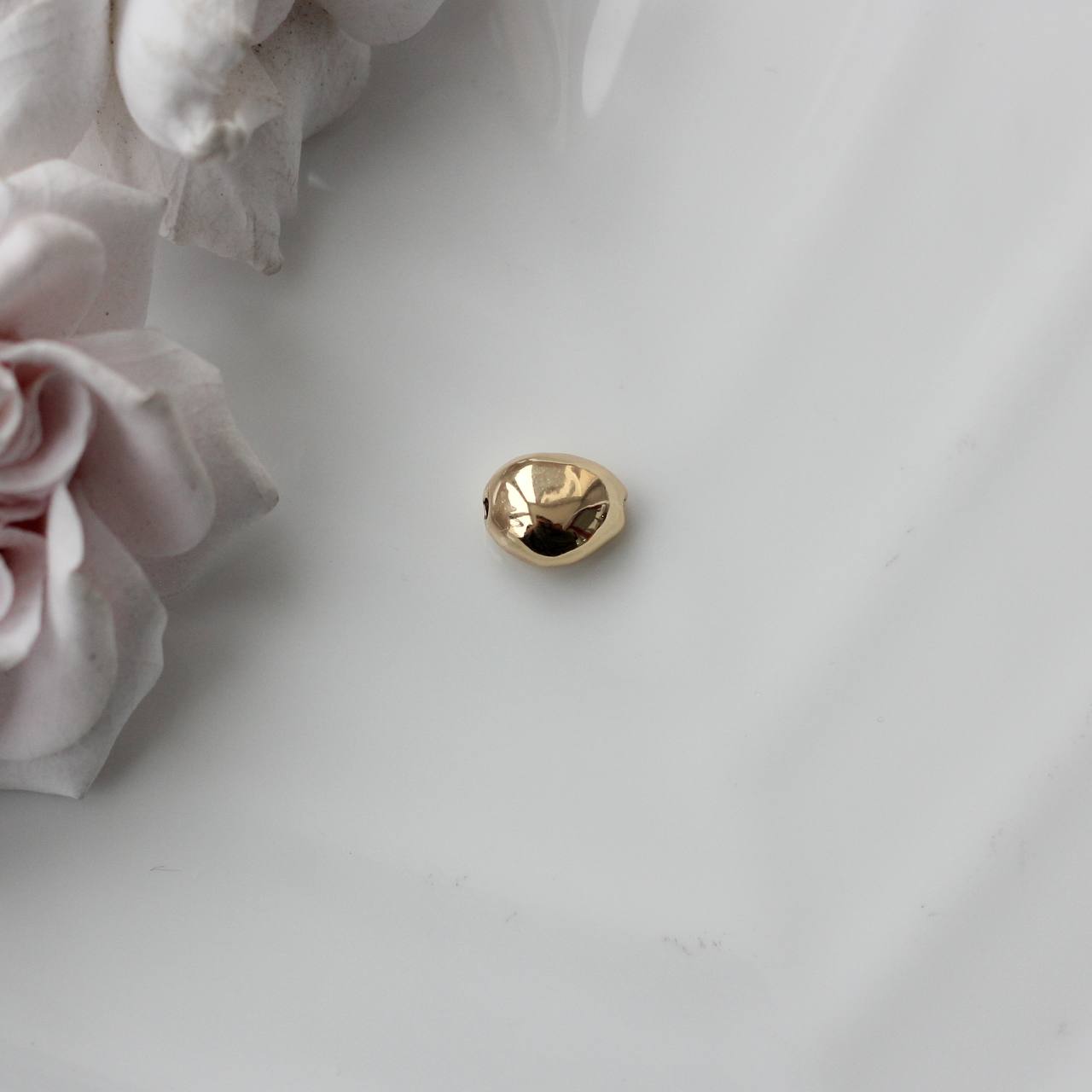 Стильная бусина-спейсер в органичной форме фриформ с зеркальной полировкой — универсальный элемент для авторских украшений. Её мягкие, слегка асимметричные линии выглядят как капля расплавленного металла и добавляют композиции живость и дизайнерский характер.