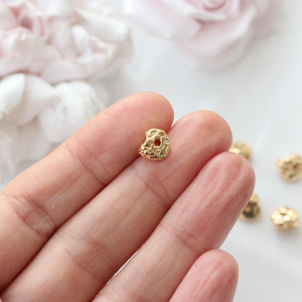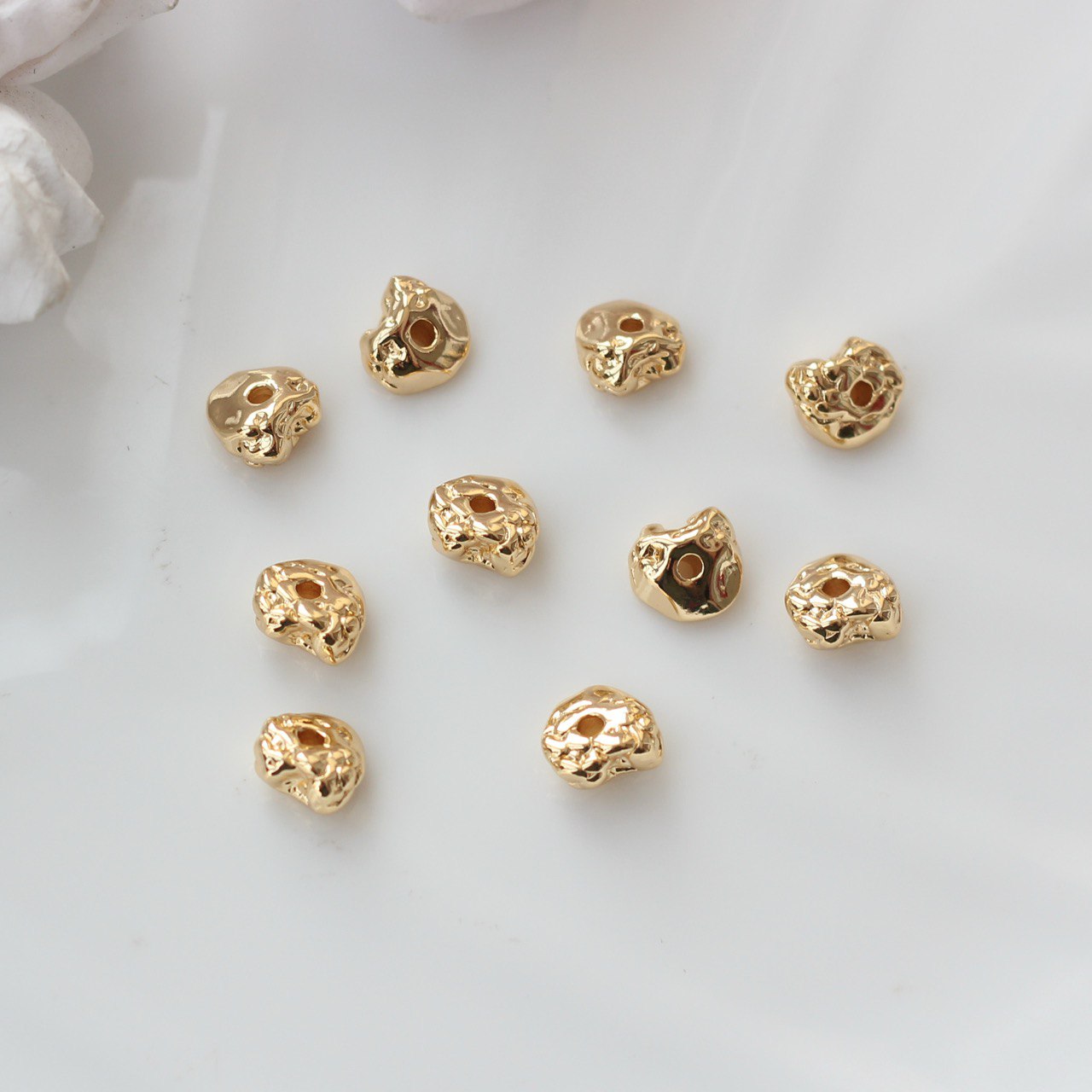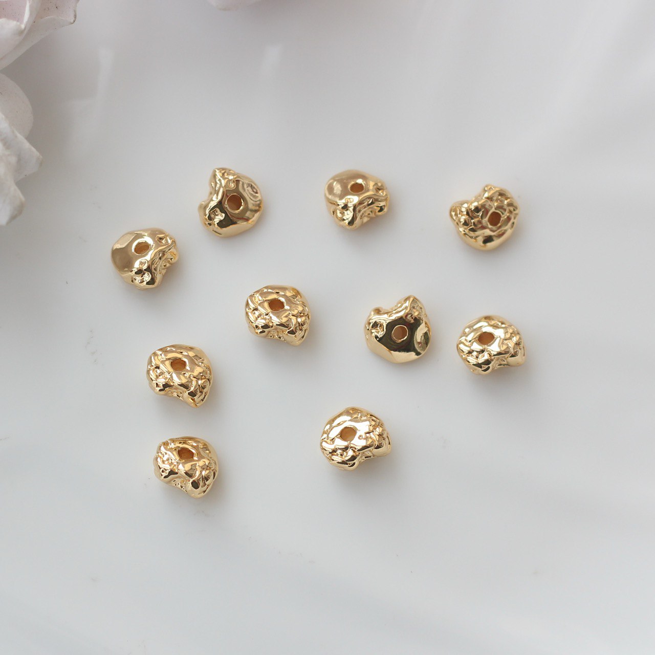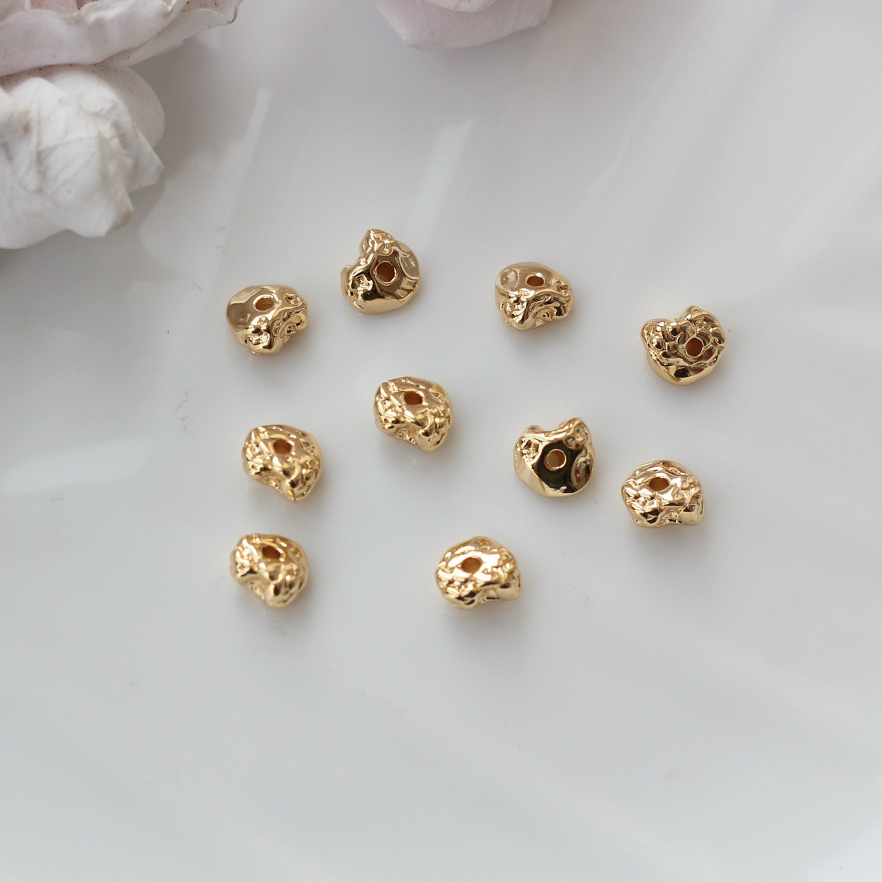Декоративная бусина в стиле фриформ с органичной, «расплавленной» формой. Каждая бусина имеет слегка разный рельеф, за счёт чего создаётся эффект живого металла и ручной работы. Отлично подходит для акцентных вставок в браслетах, колье и серьгах, особенно в сочетании с натуральными камнями и стеклянными бусинами.
