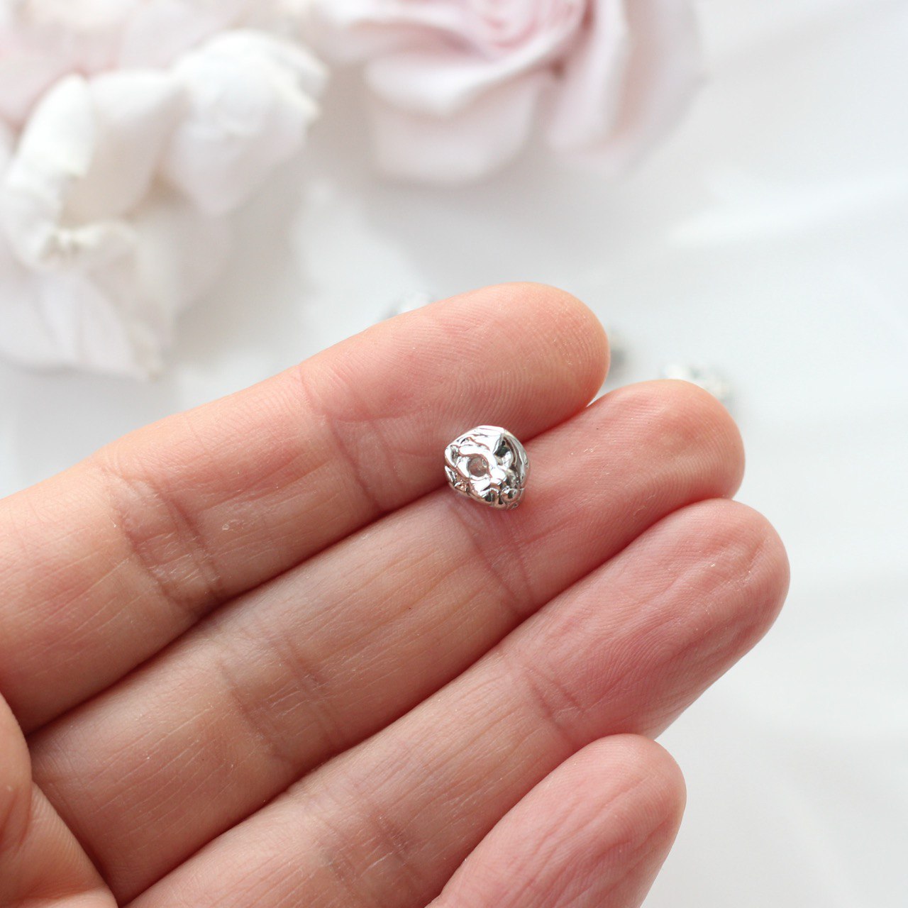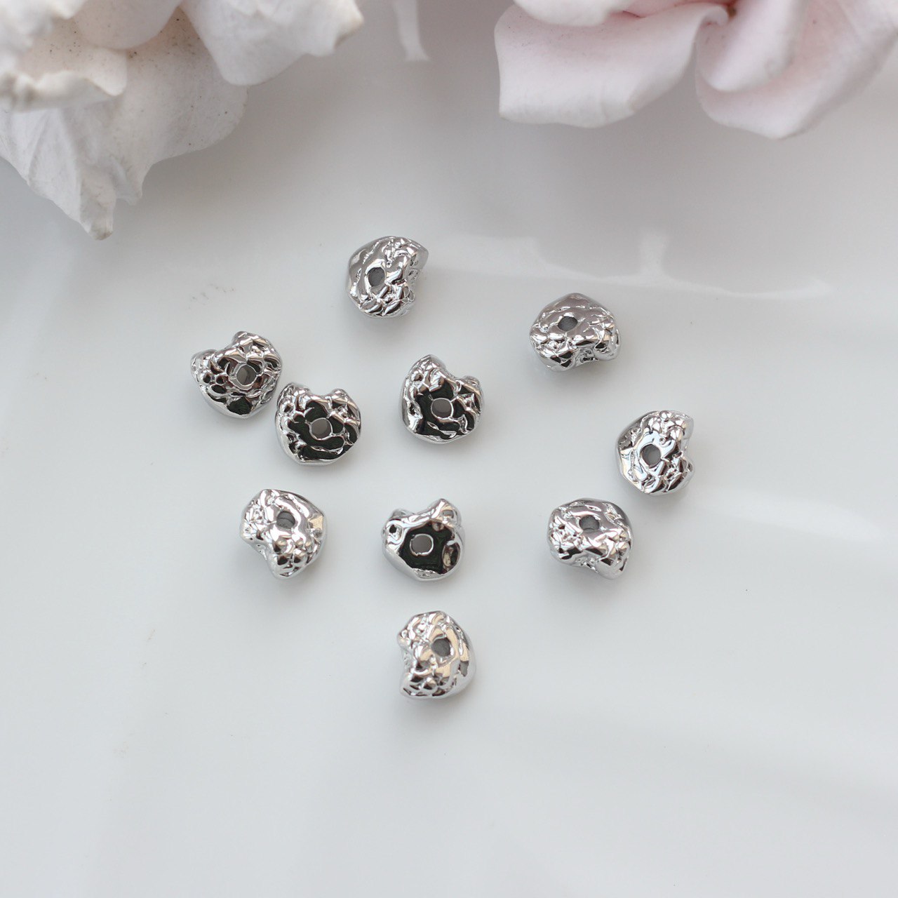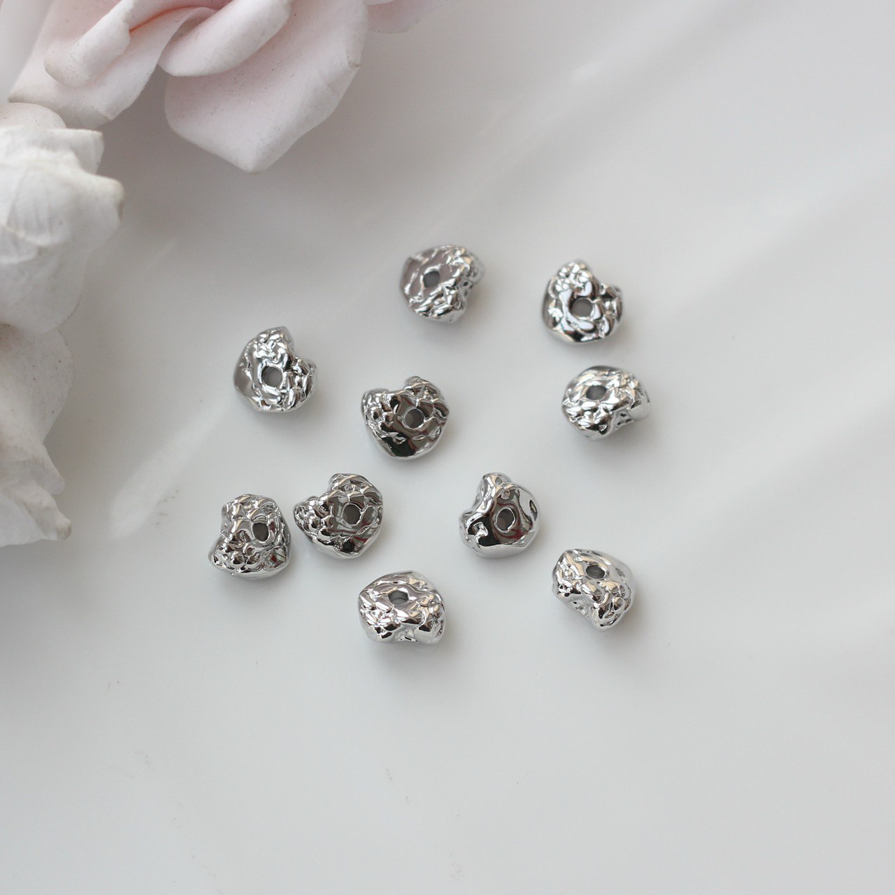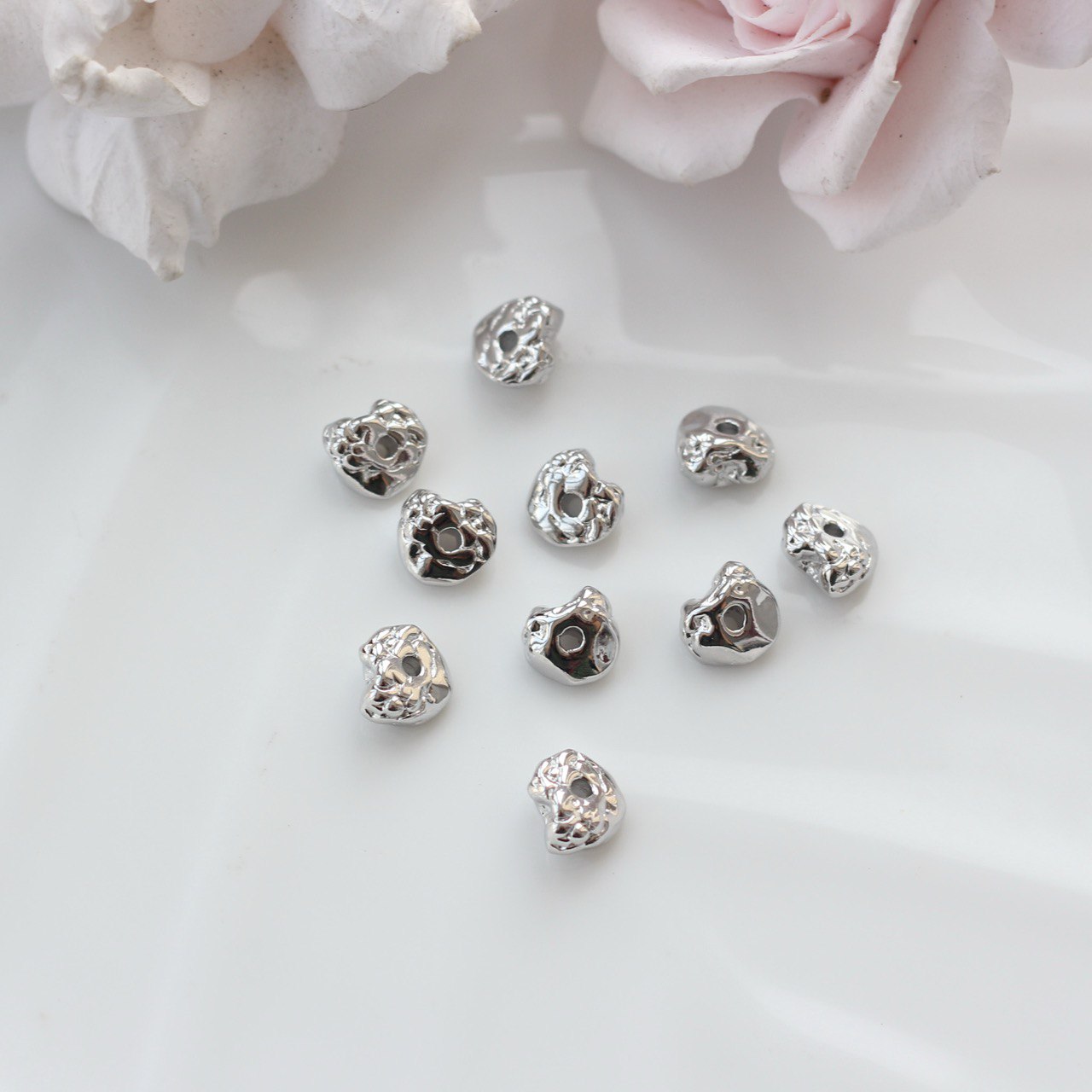 Декоративная бусина в стиле фриформ с органичной, «расплавленной» формой. Каждая бусина имеет слегка разный рельеф, за счёт чего создаётся эффект живого металла и ручной работы. Отлично подходит для акцентных вставок в браслетах, колье и серьгах, особенно в сочетании с натуральными камнями и стеклянными бусинами.