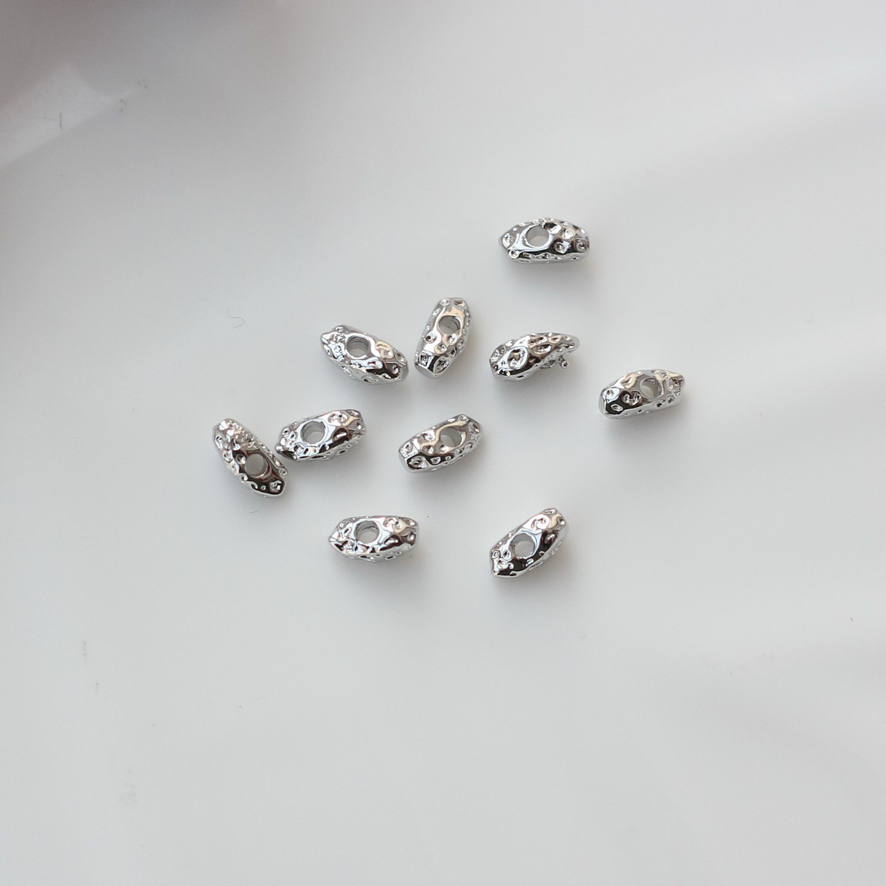 Декоративные бусины фриформ с неровной, «живой» формой и эффектной фактурной поверхностью. Каждая бусина уникальна: с мягкими изгибами, углублениями и отражениями света, которые создают ощущение ручной работы и органического дизайна.
