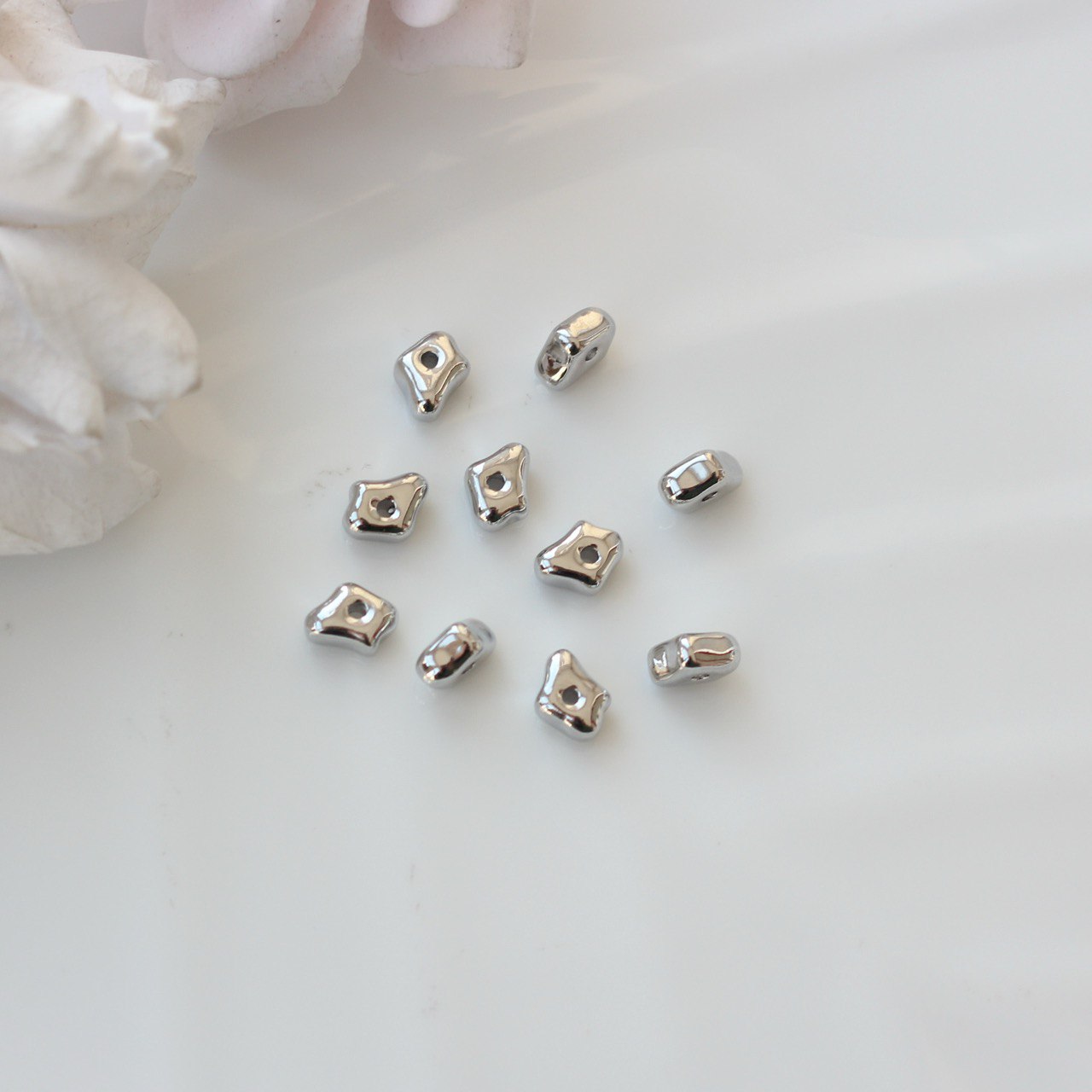 Гладкие металлические бусины в стиле фриформ с мягкими, органичными очертаниями. Полированная поверхность красиво отражает свет и создаёт эффект «жидкого металла», благодаря чему бусины выглядят современно и дорого.