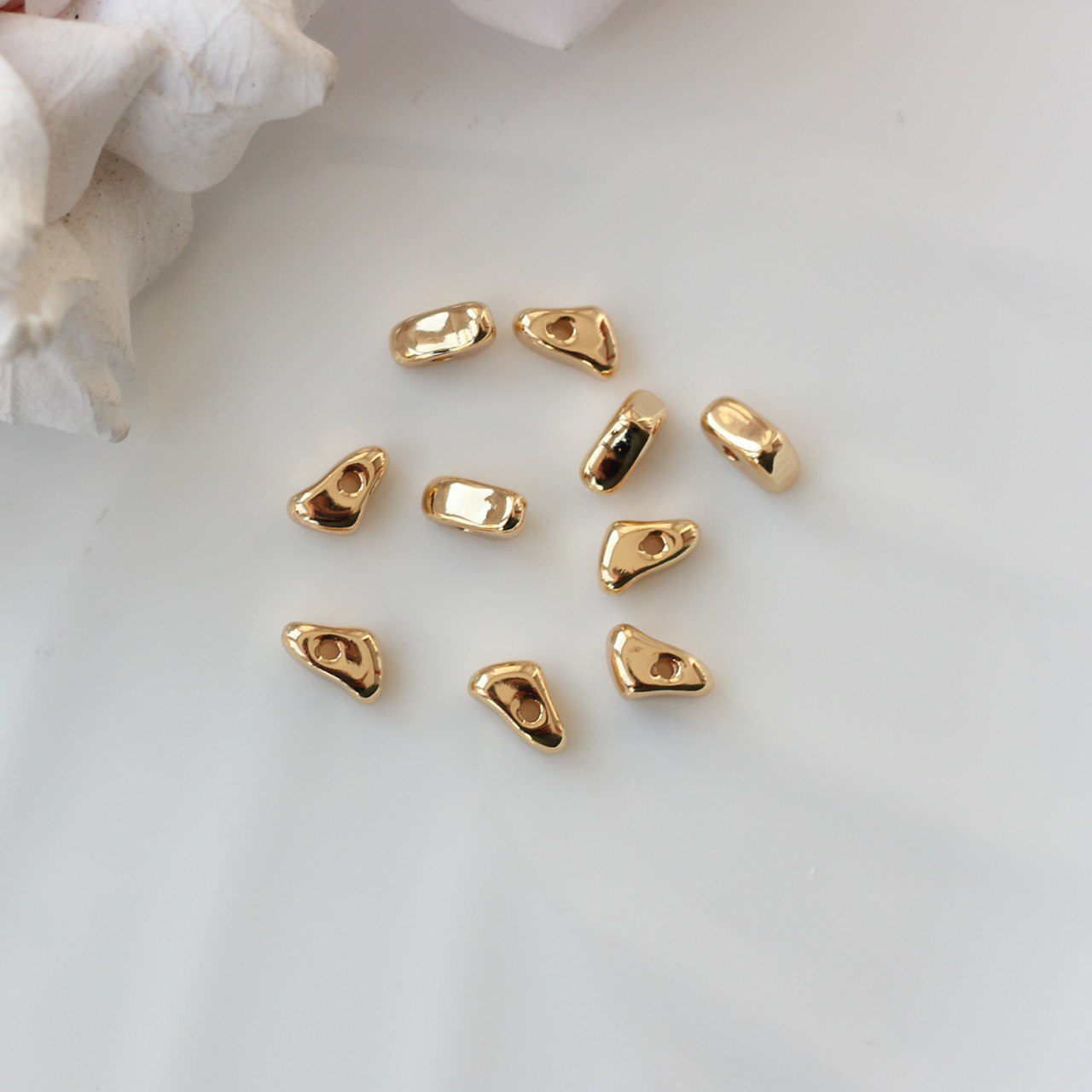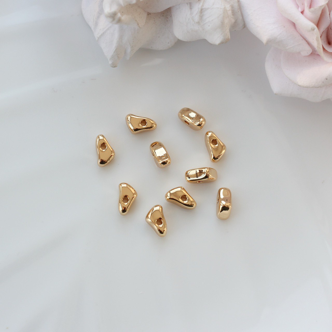 Форма асимметричная, каждая бусина немного отличается — это придаёт украшениям ощущение ручной работы и дизайнерского подхода. Отлично подходят для браслетов, колье, чокеров и серёг в минималистичном и современном стиле.