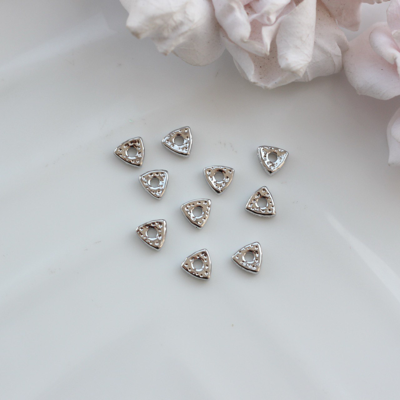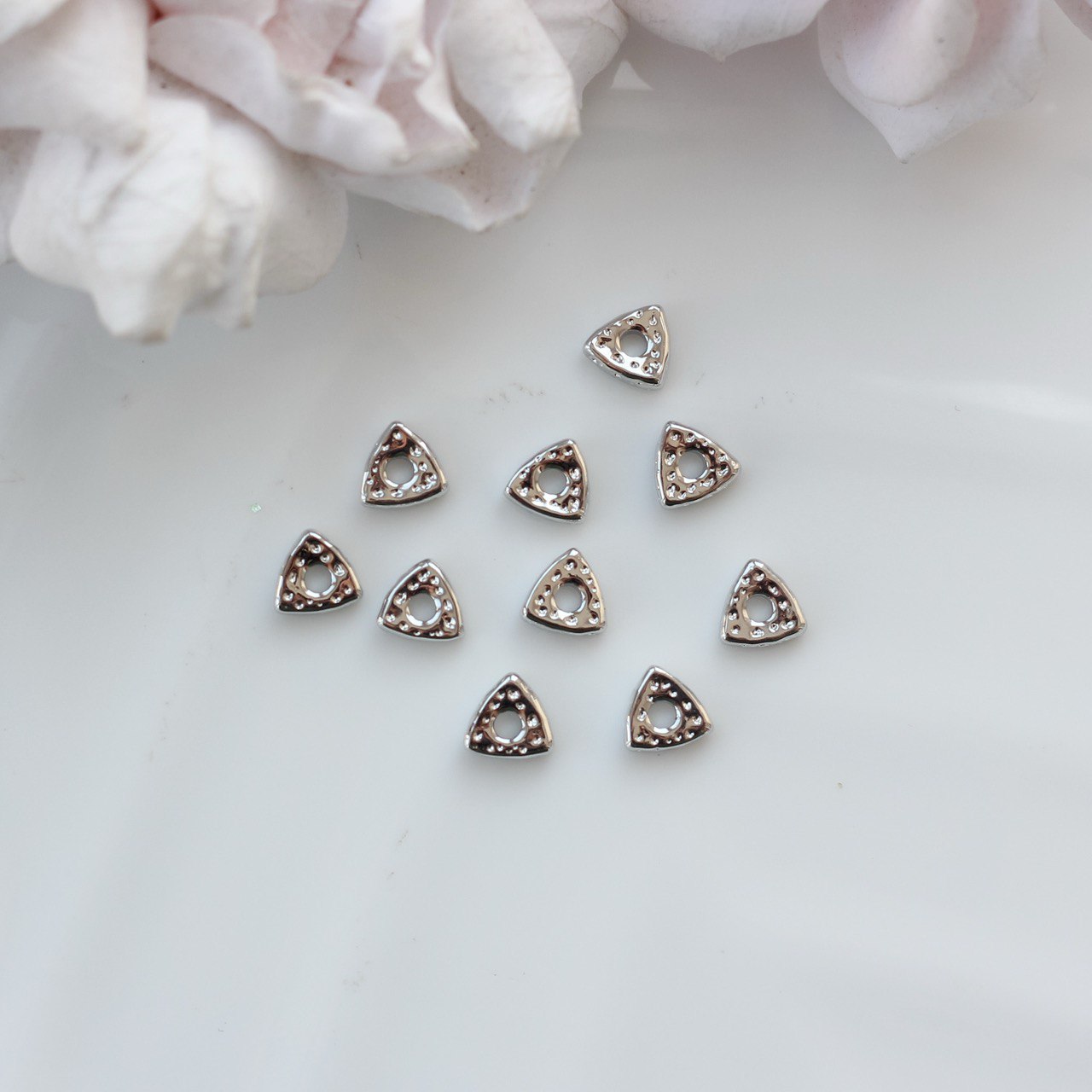 Металлические бусины в форме треугольника с рельефной, фактурной поверхностью — стильный геометрический акцент для современных украшений. Чёткая форма в сочетании с «живой» текстурой создаёт интересный контраст между графичностью и органикой.