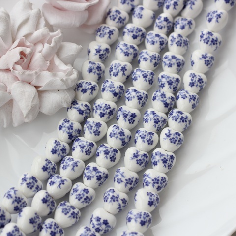 Керамическая бусина в форме сердца с декоративной синей росписью. Лаконичное сочетание белой основы и насыщенного синего орнамента делает бусину универсальной для современных украшений и дизайнерских проектов с лёгким акцентом на ручную эстетику. Идеальны для украшений в "русском стиле".