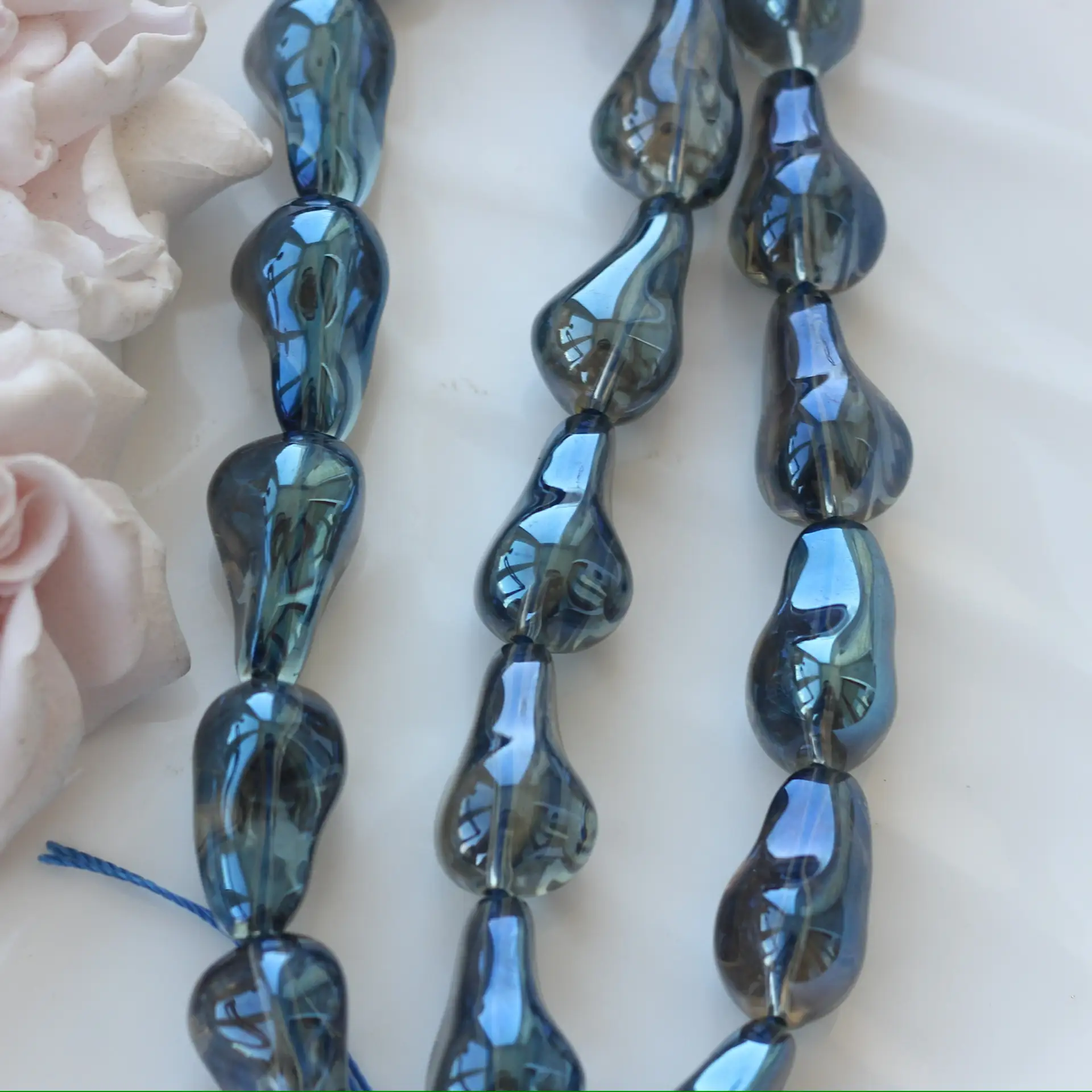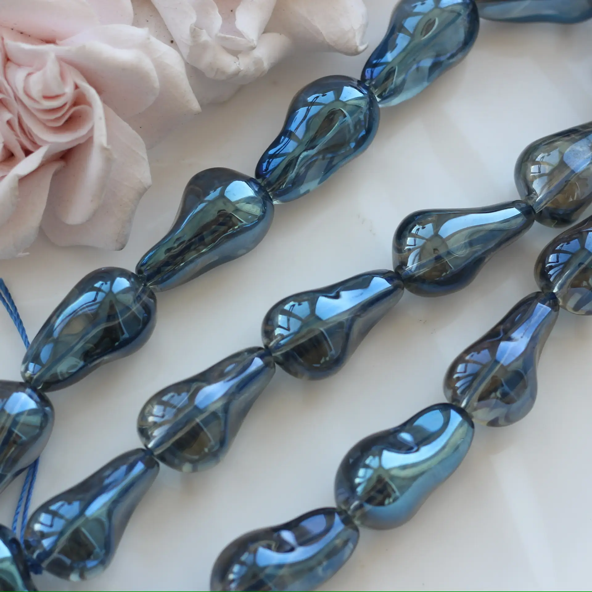 Каждая нить может содержать незначительные отличия в тоне, огранке и насыщенности цвета — это нормально для стеклянных бусин ручной сборки.