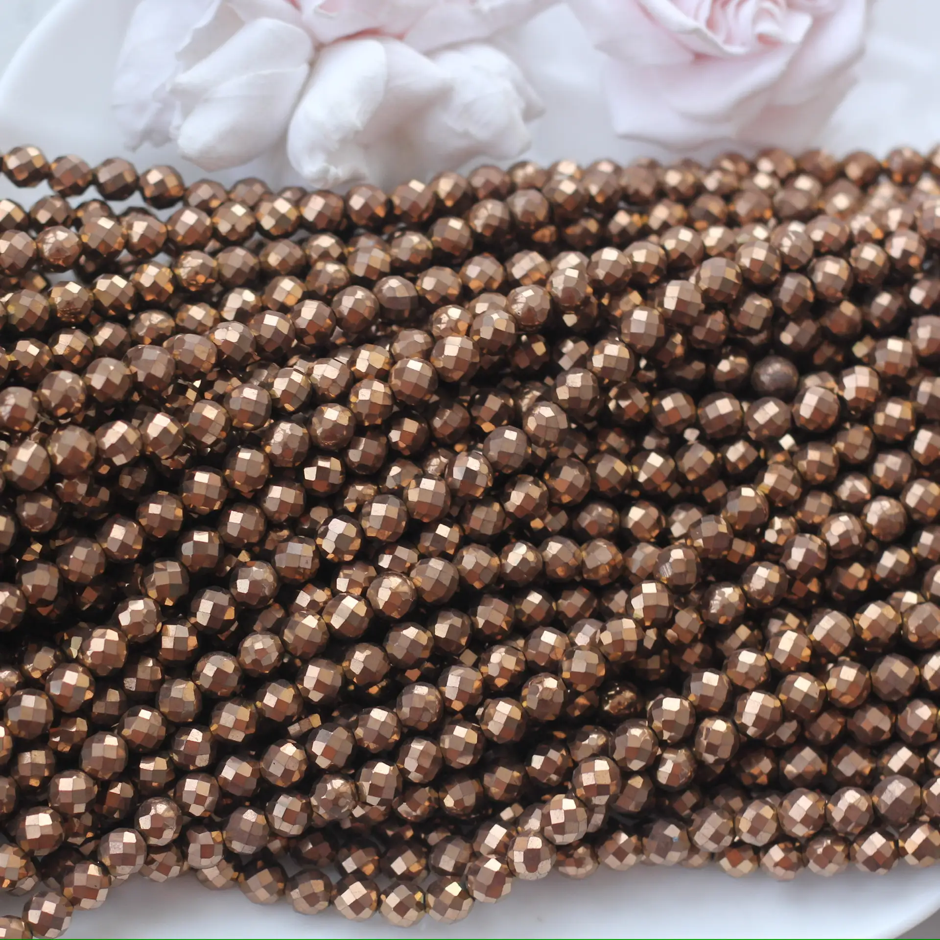 Бусины «Гематин» (имитация гематита), гранёный шарик — шоколад, 4 мм