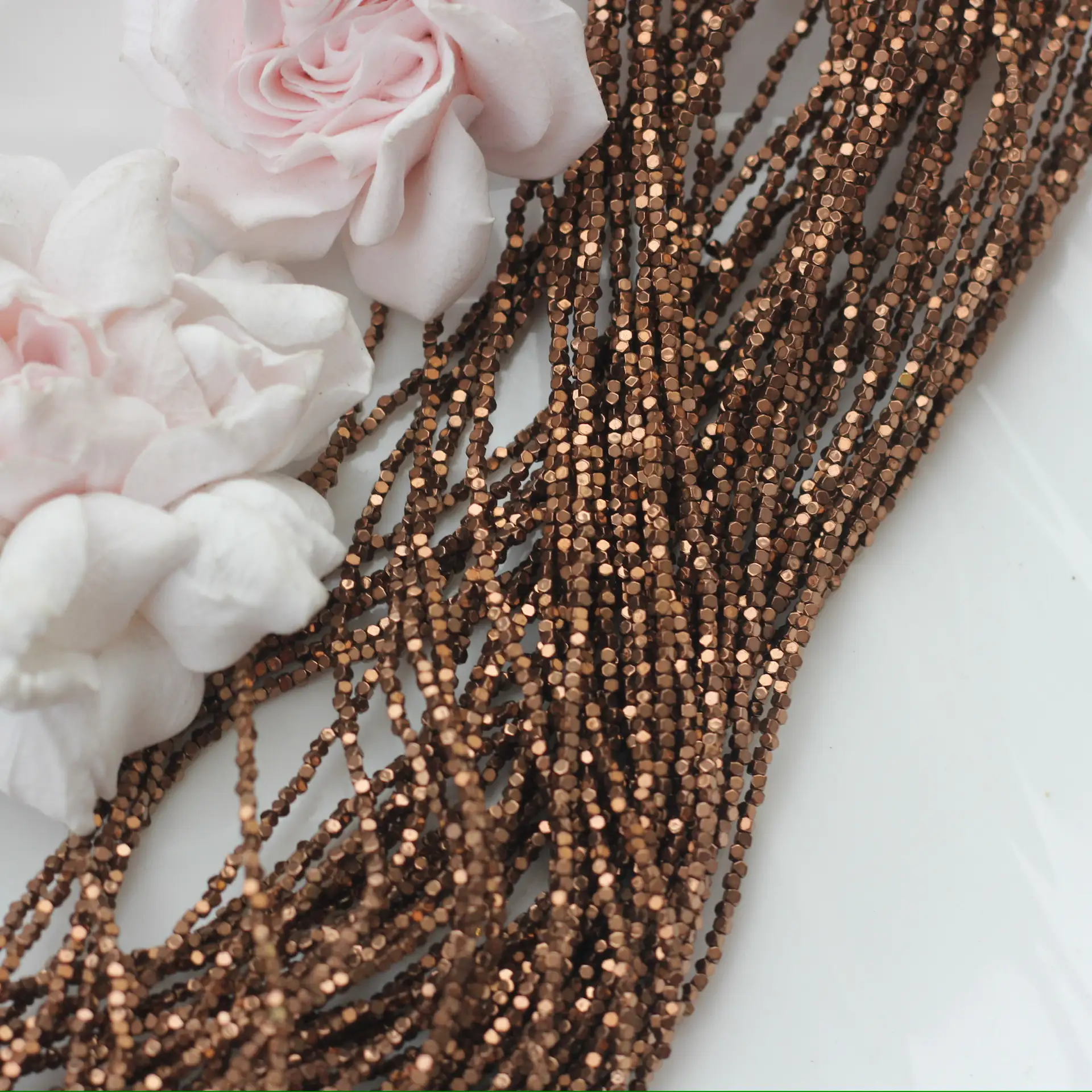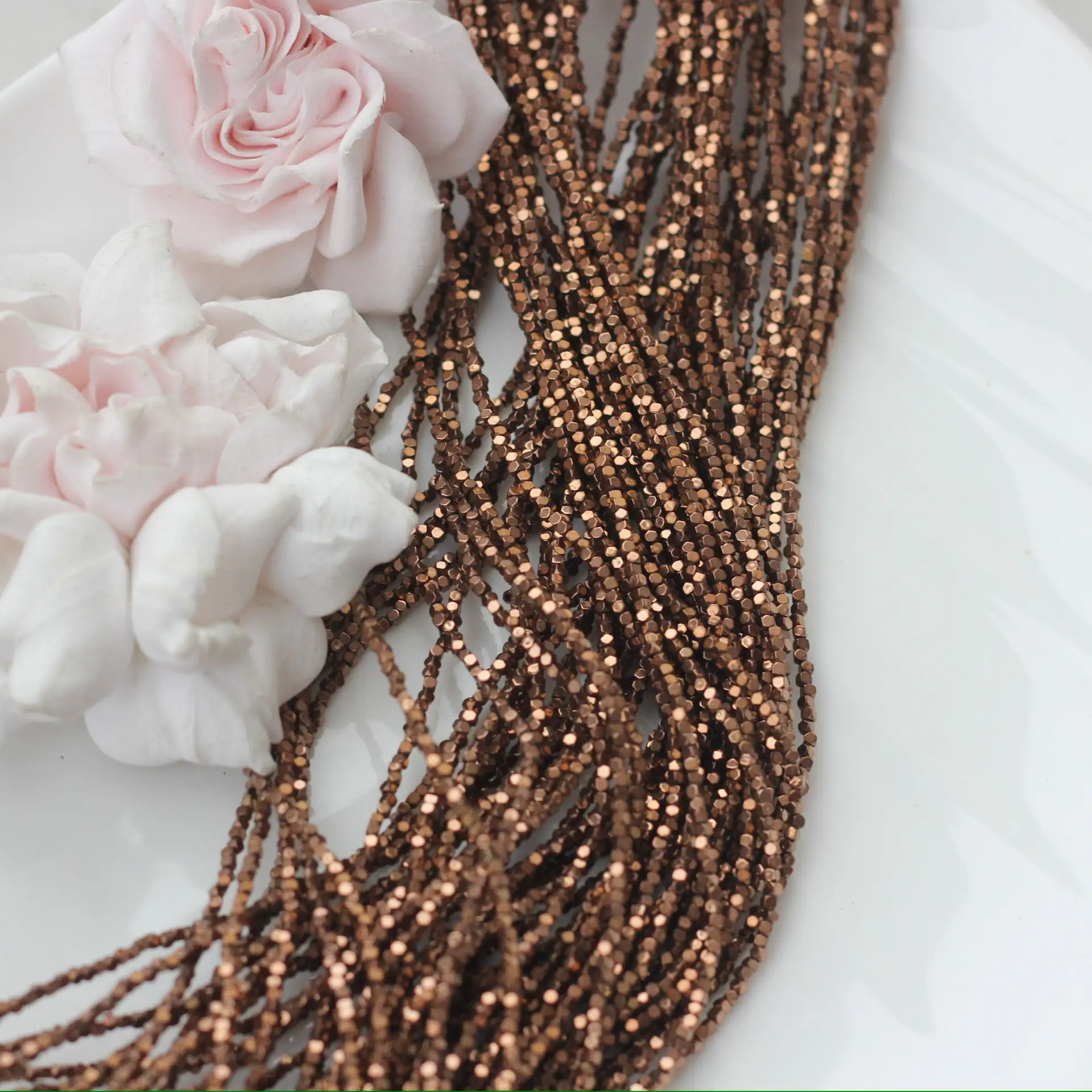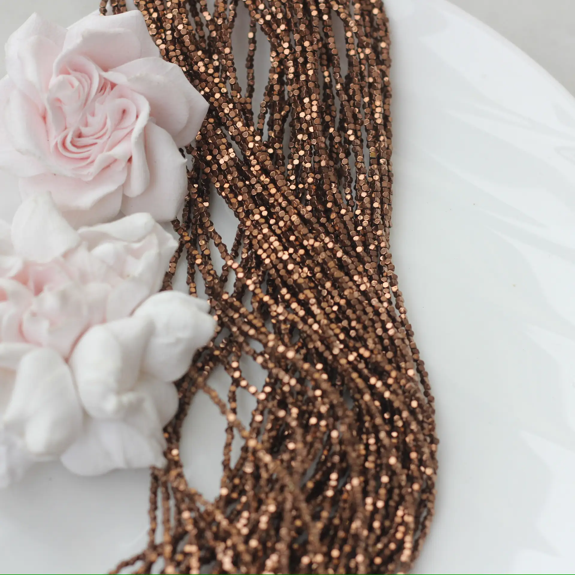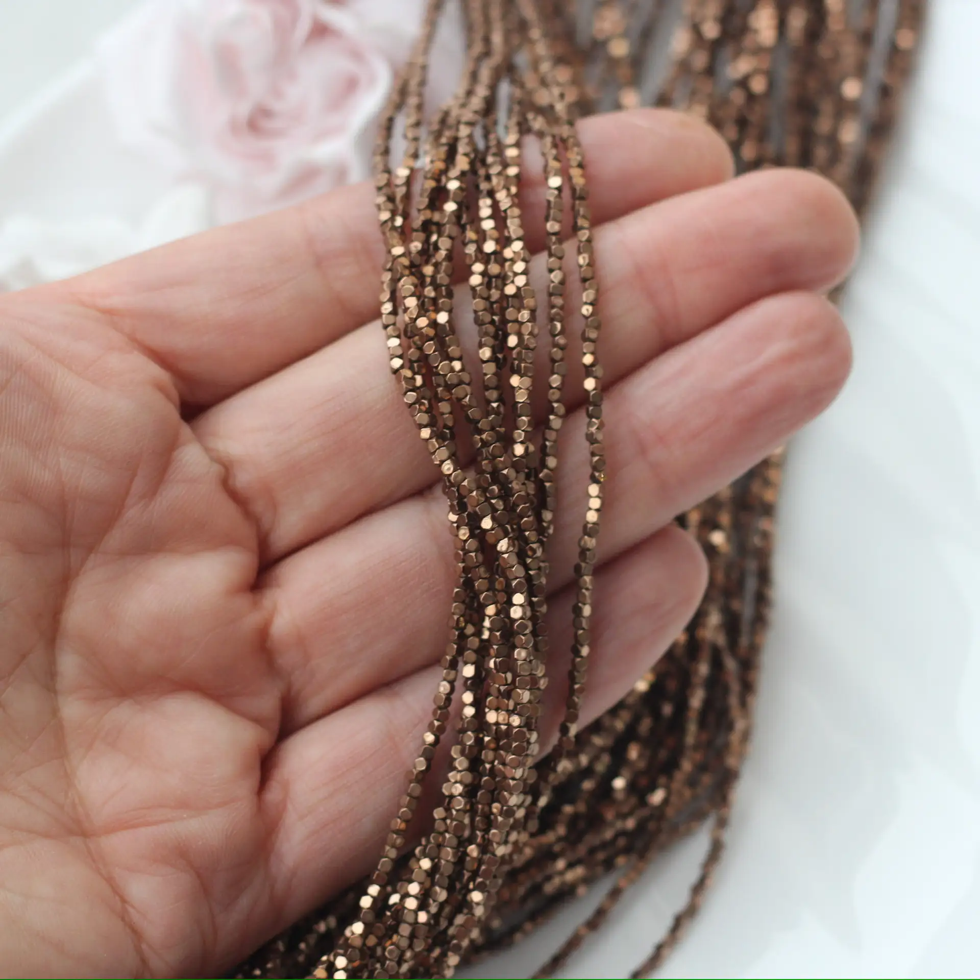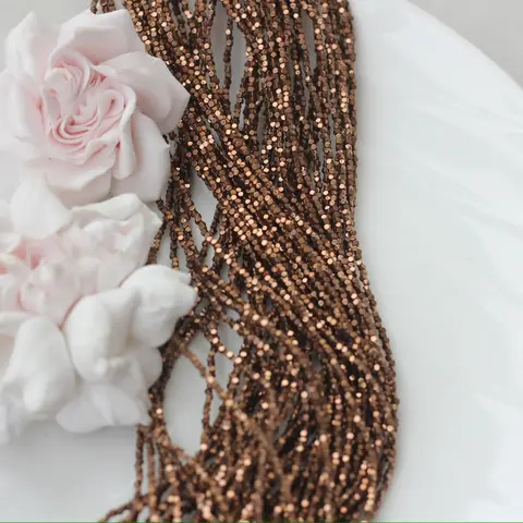 Шоколадные бусины из синтетического гематита с формой усечённого куба мерцают тёплым металлическим блеском, создавая стильный современный акцент в украшениях. Миниатюрный размер делает их идеальными для браслетов, колье, серёг и в роли разделителей в авторских аксессуарах. Тёплый, насыщенный цвет с зеркальной поверхностью напоминает оттенки какао и тёмного шоколада, красиво отражает свет и придаёт украшениям аккуратный, собранный вид. Каждая бусина уникальна, что придаёт украшениям особую выразительность и авторский стиль. Отлично подходят для браслетов, колье, серёг и акцентных элементов.