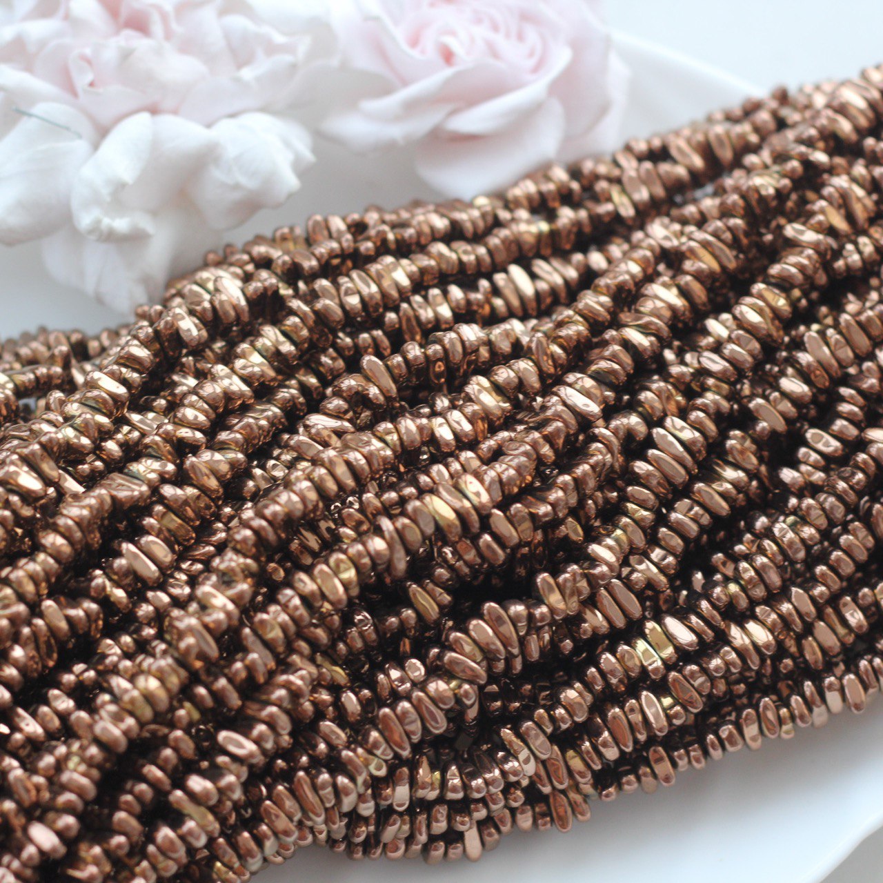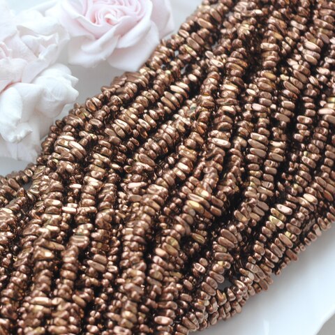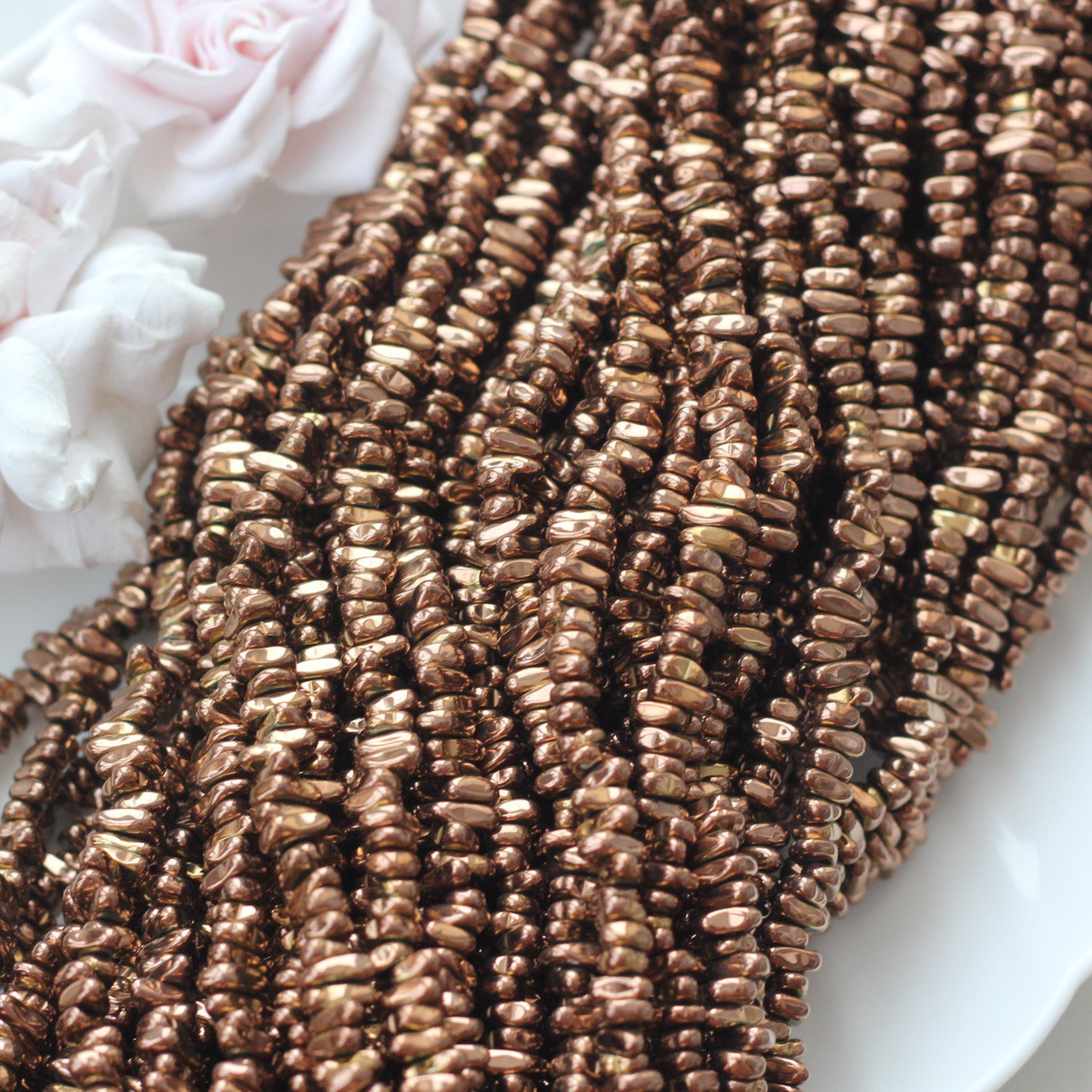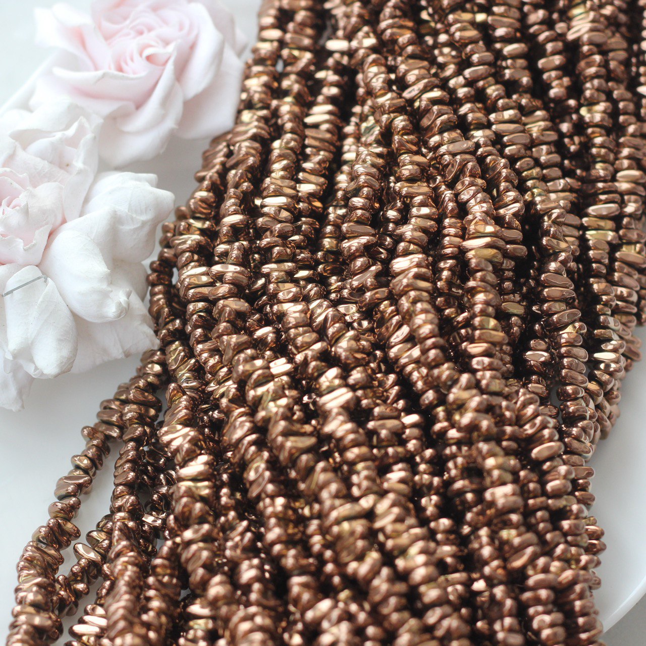 Шоколадные бусины из синтетического гематита в форме фриформ (галтовка) переливаются тёплым металлическим блеском, создавая эффект природной текстуры и лёгкой асимметрии. Тёплый, насыщенный цвет с зеркальной поверхностью напоминает оттенки какао и тёмного шоколада, красиво отражает свет и придаёт украшениям аккуратный, собранный вид. Каждая бусина уникальна, что придаёт украшениям особую выразительность и авторский стиль. Отлично подходят для браслетов, колье, серёг и акцентных элементов.