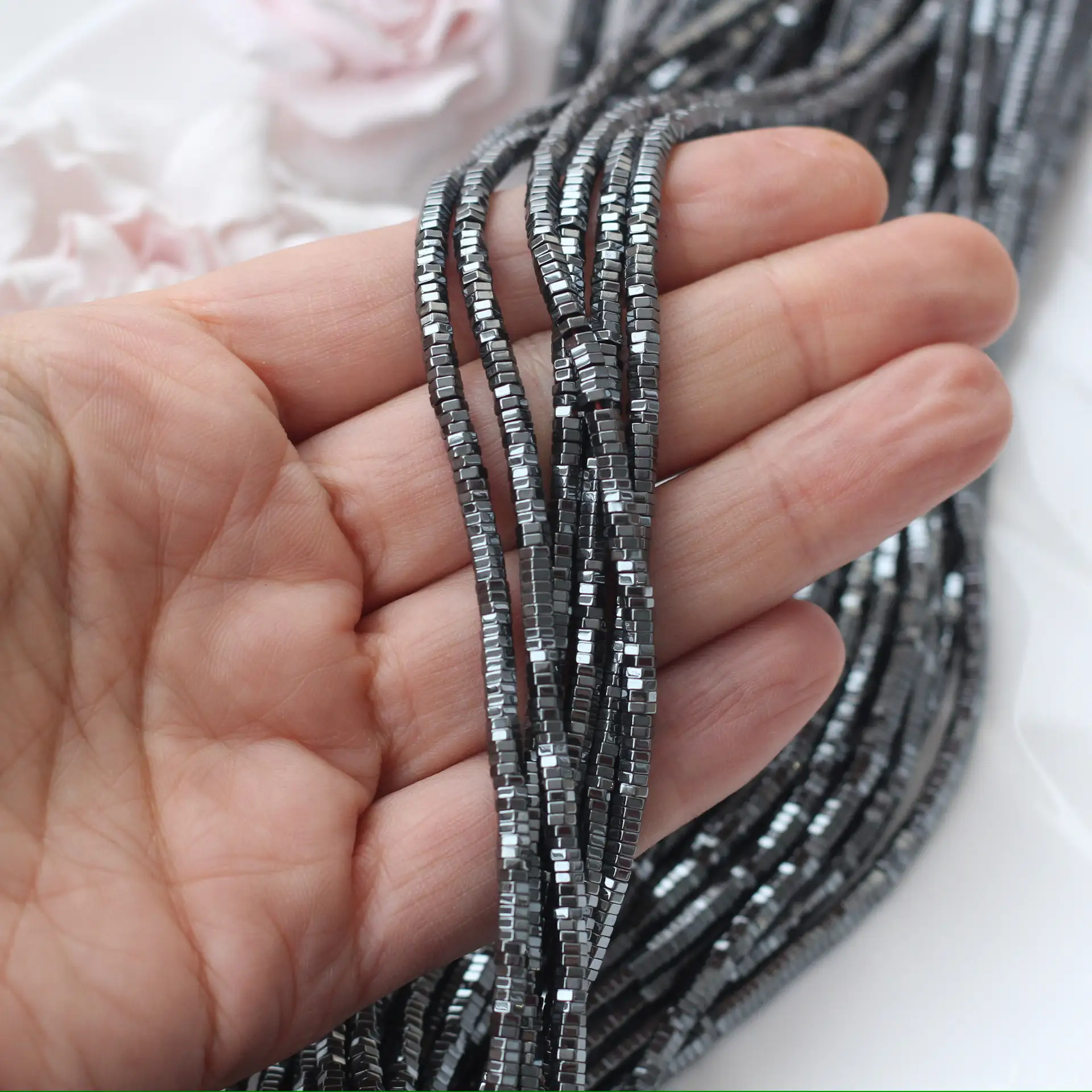 Графитовые бусины из синтетического гематита с изящной шестигранной формой отражают свет холодным металлическим блеском, добавляя украшениям стильную графичность и элегантность. Их компактный размер отлично подойдёт для браслетов, колье, серёг или в качестве аккуратных разделителей в авторских изделиях.
