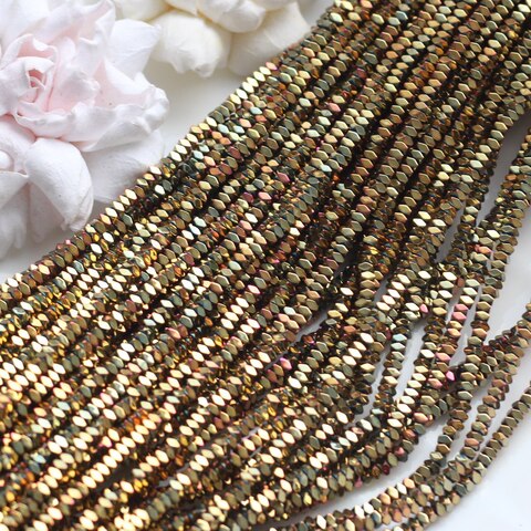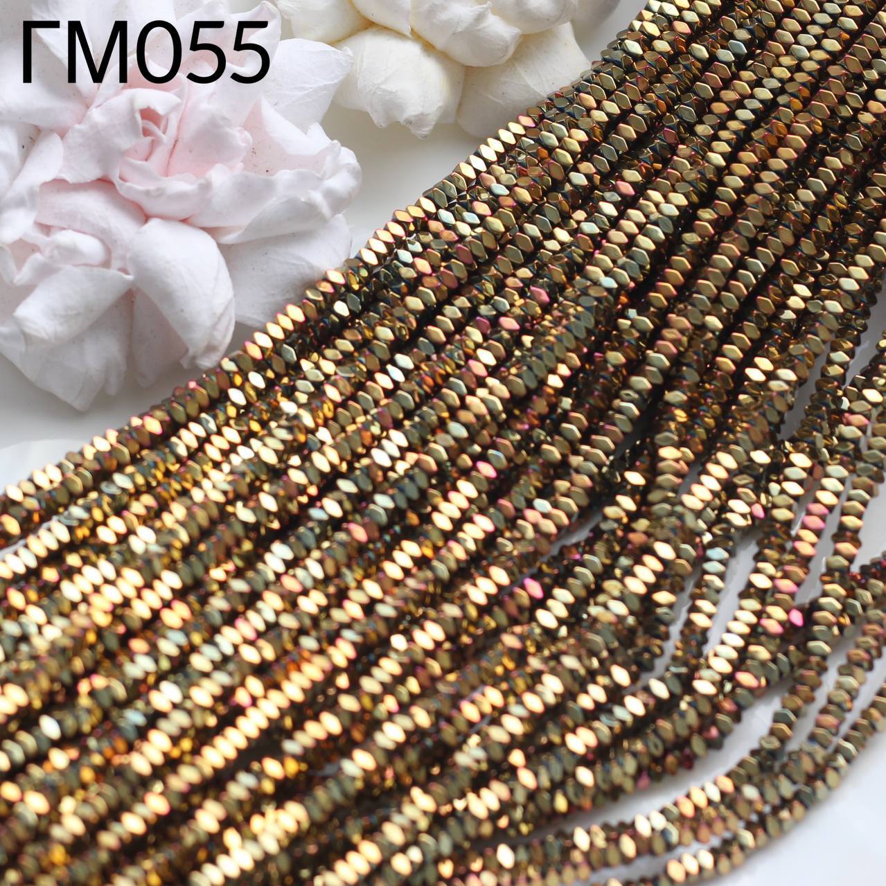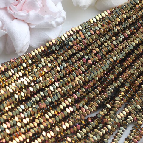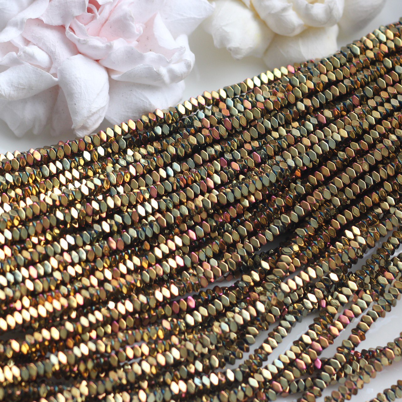 Бусины из синтетического гематита «Ромб» — радужные (золотисто-оливковые), 3×2 мм ✨