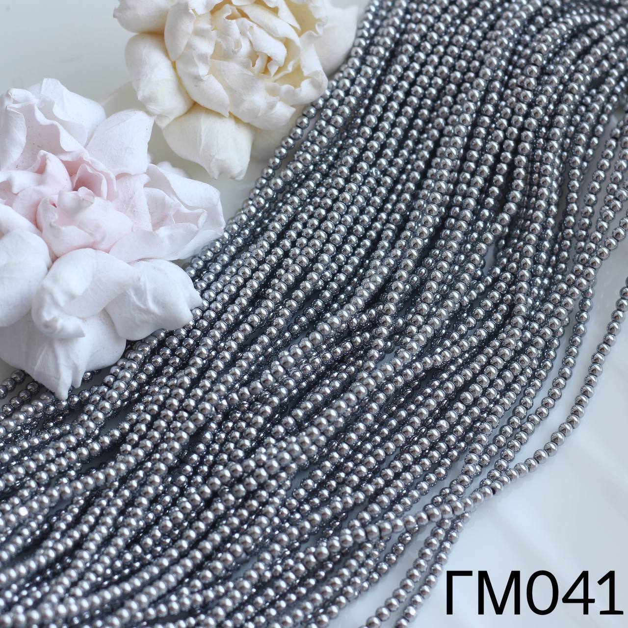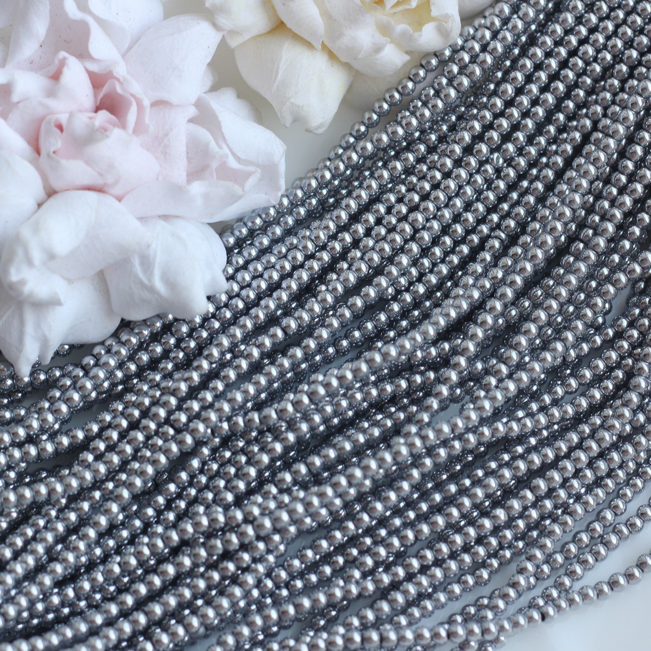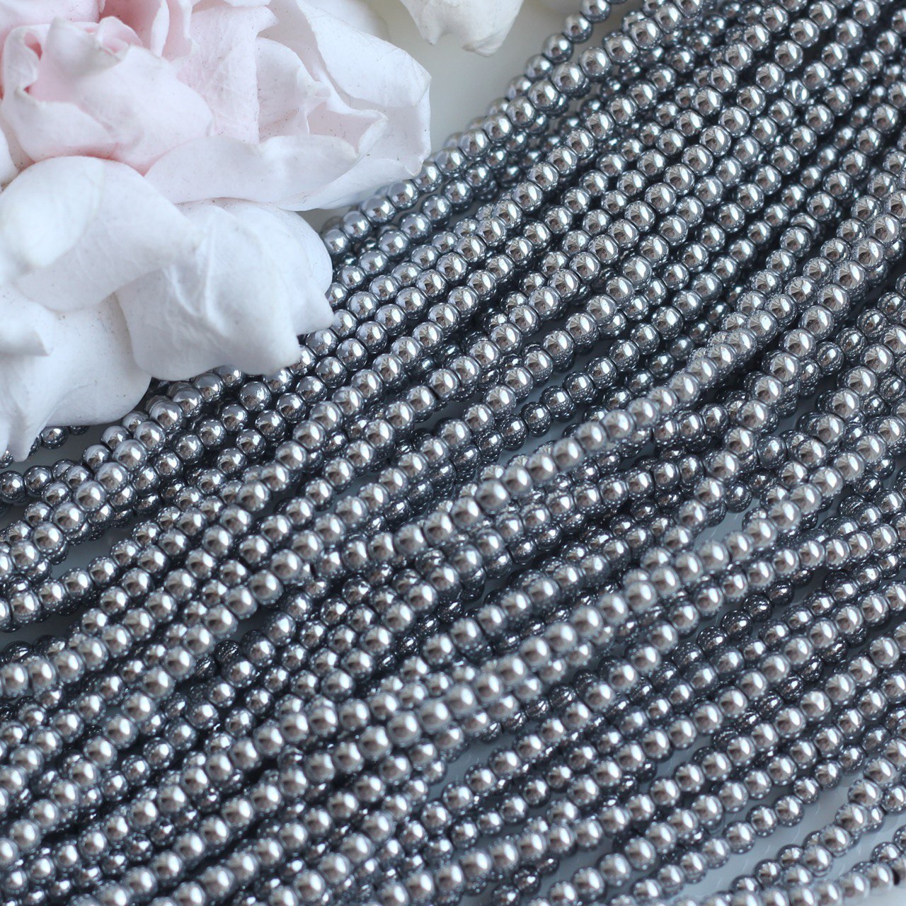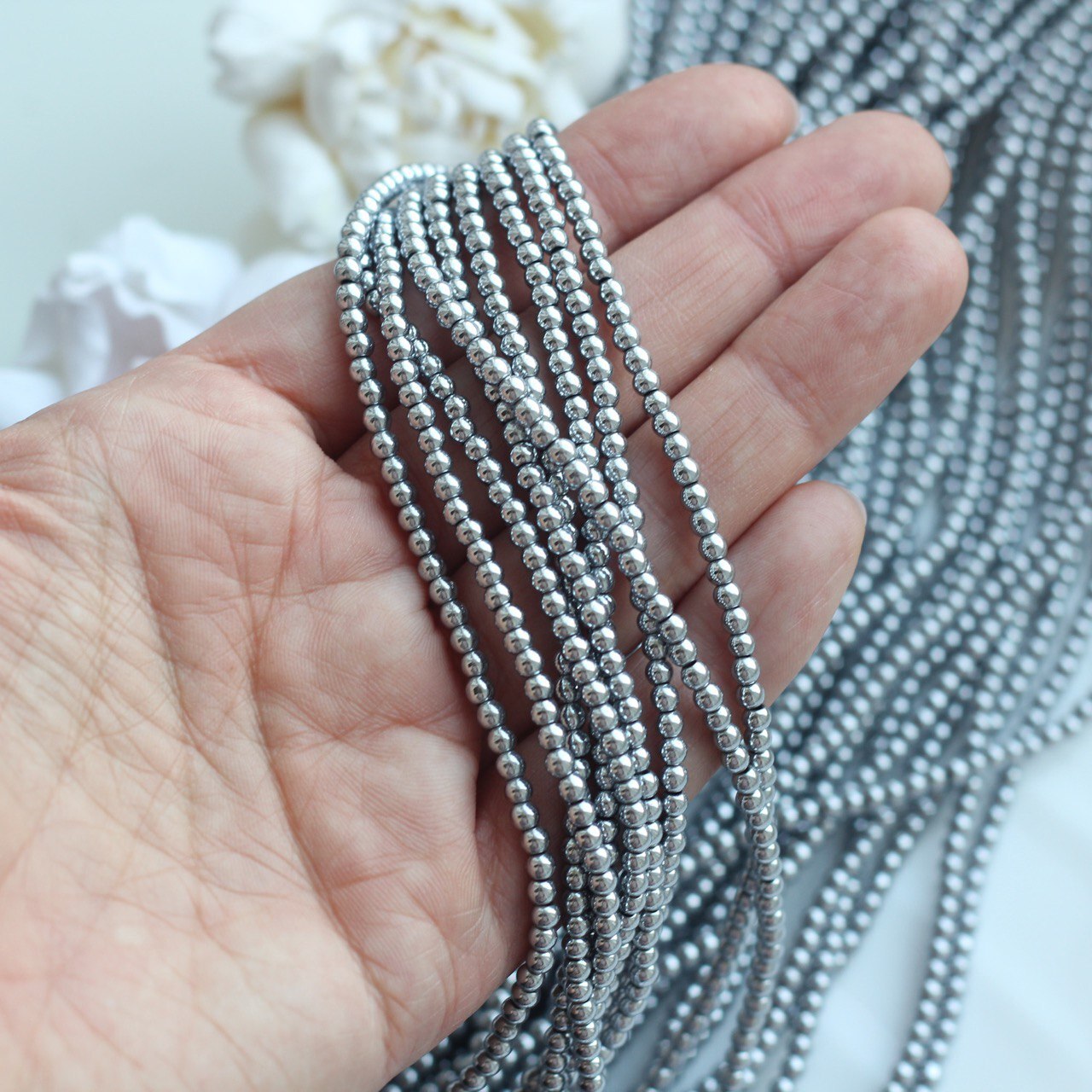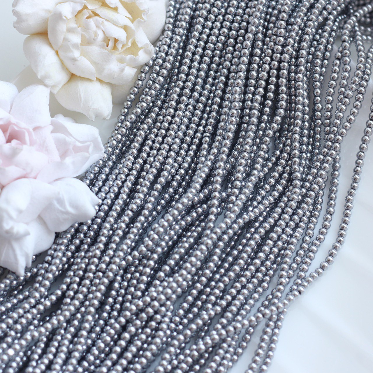 Бусины из синтетического гематита «Шарик» — серебро, 3 мм ✨