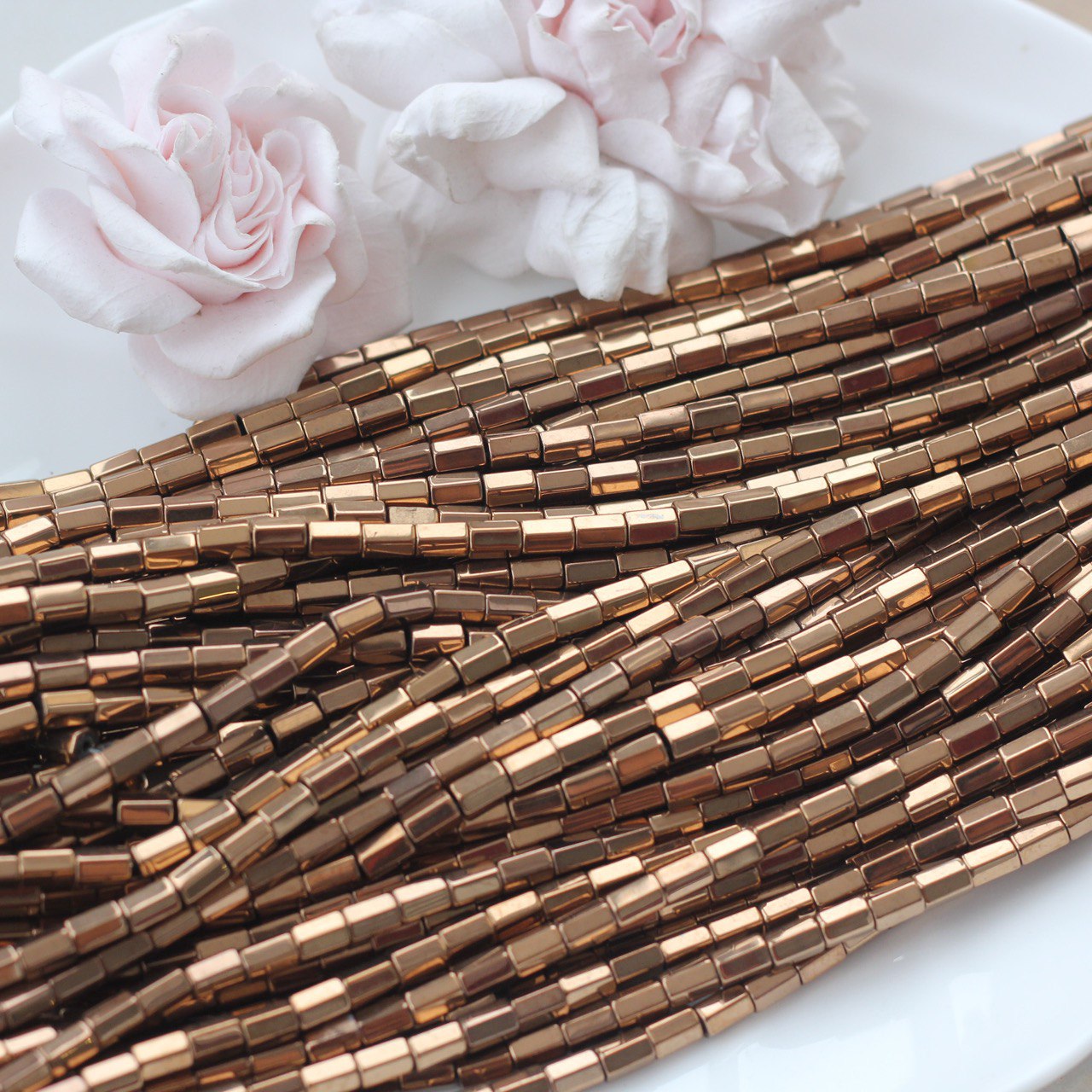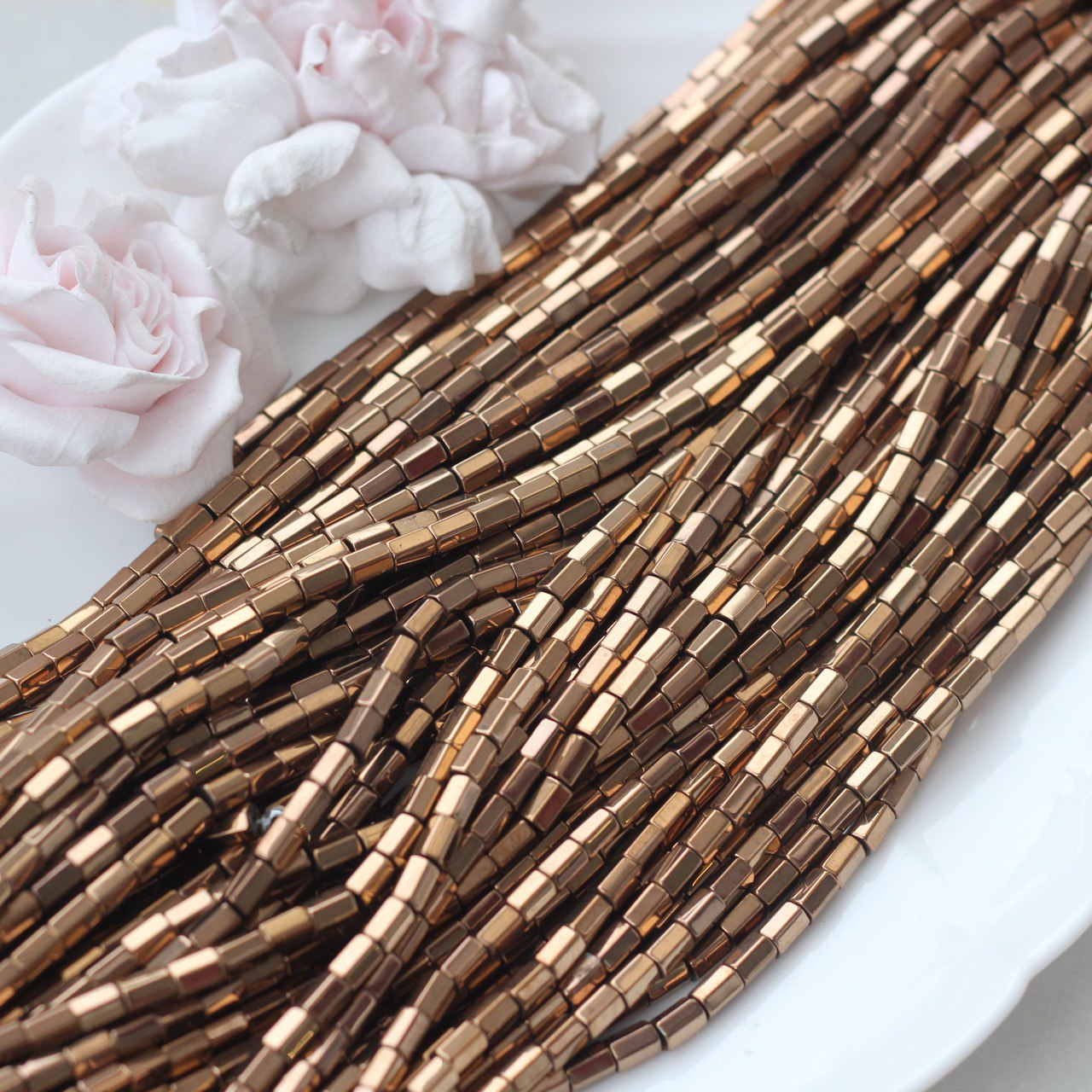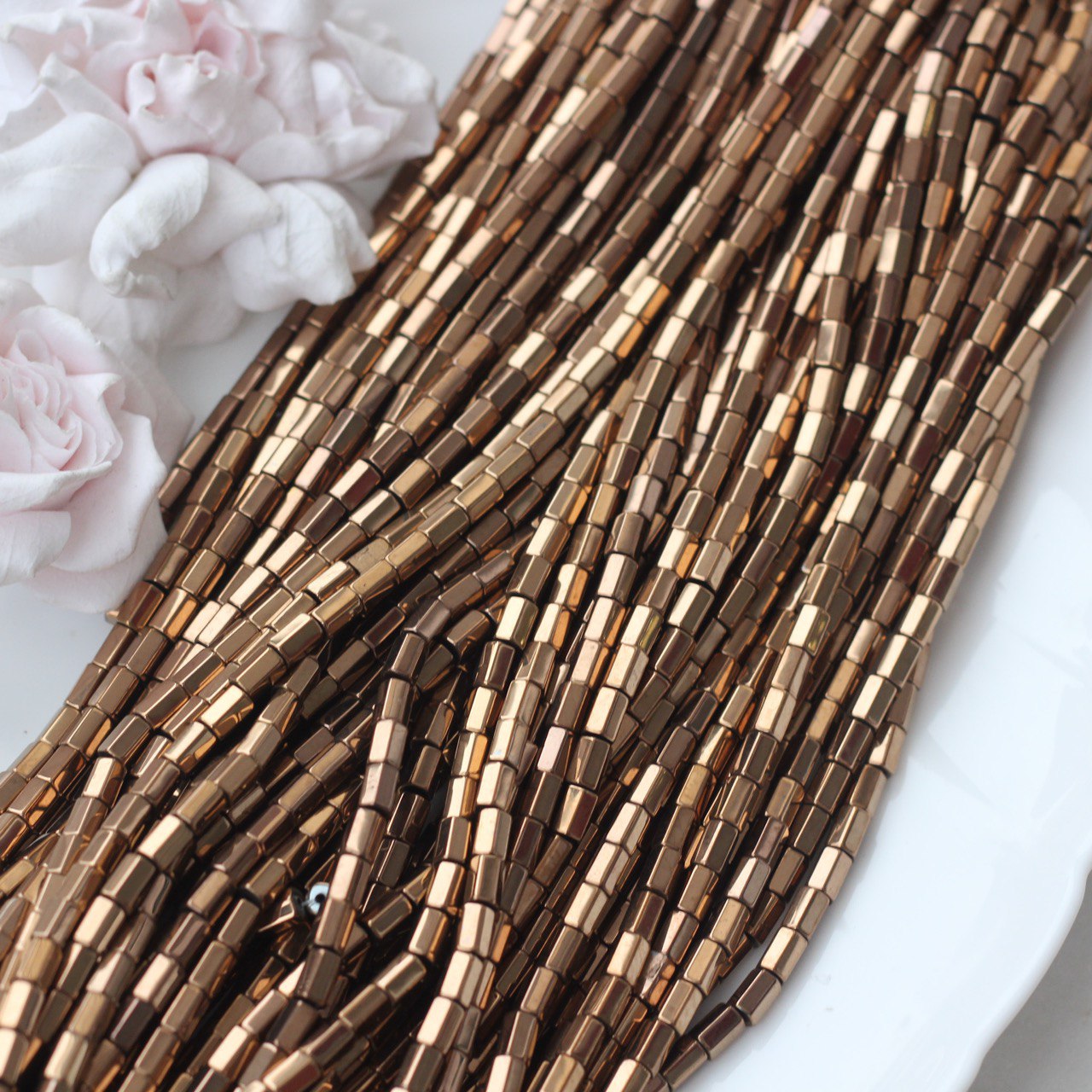 Бусины из синтетического гематита с прямоугольной формой и гладкой полировкой переливаются мягким шоколадным блеском. Идеально подходит для браслетов, колье, серёг или в качестве разделителей в сложных дизайнерских композициях.
