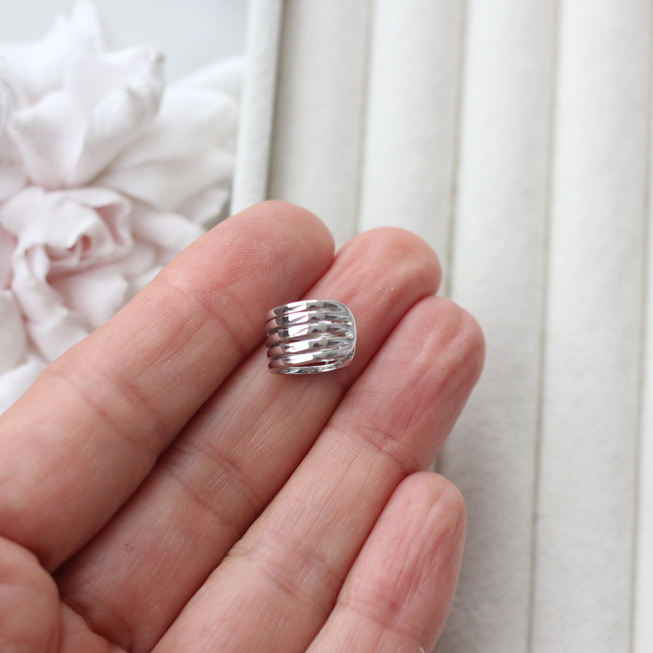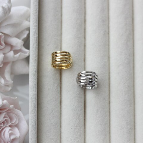 Стильный кафф с многорядной волнообразной формой — минималистичный, но выразительный акцент для современных украшений. Гладкие параллельные линии создают эффект объёма и красиво отражают свет, имитируя многослойное ювелирное изделие.