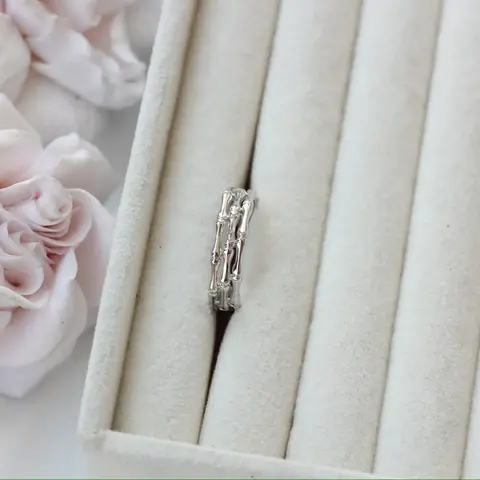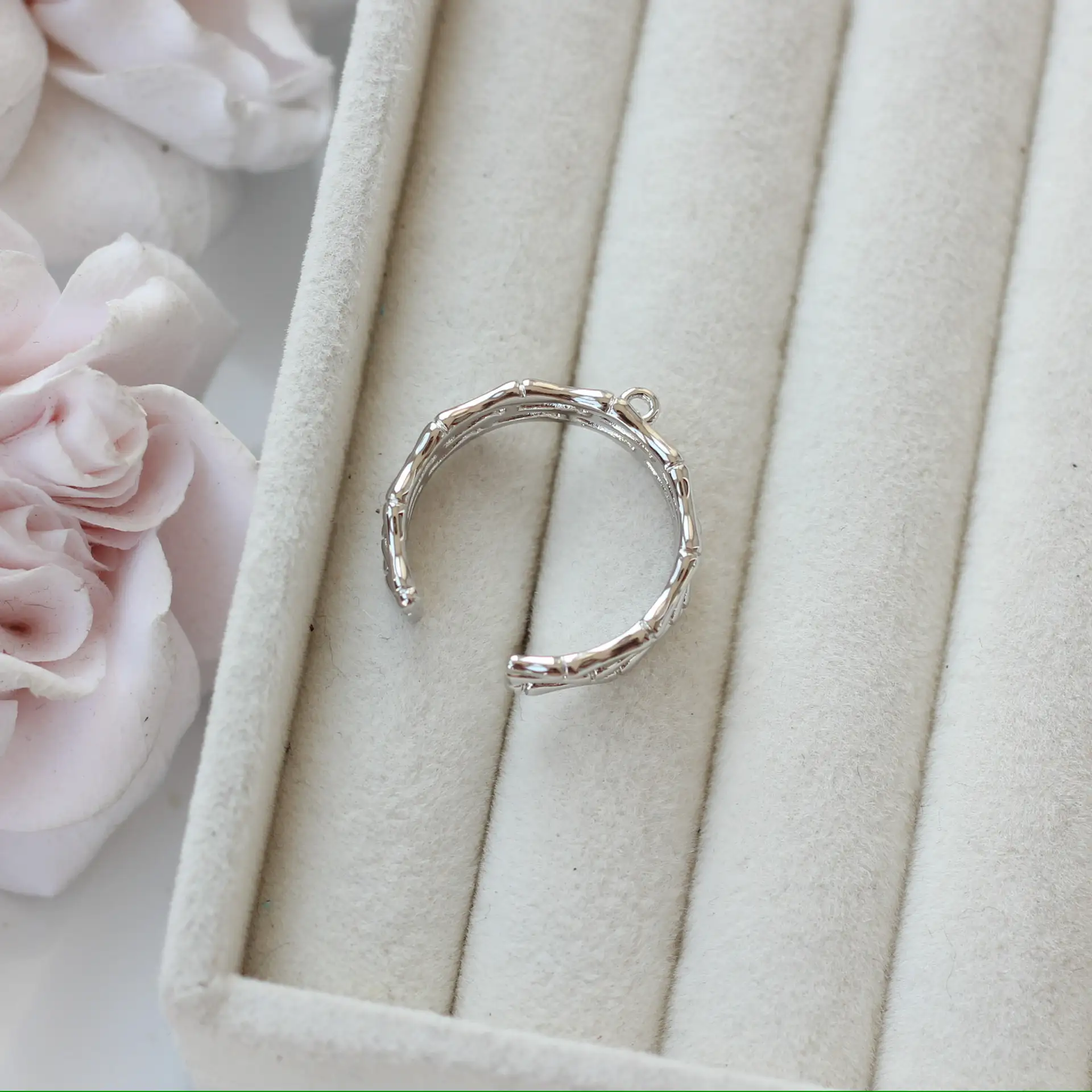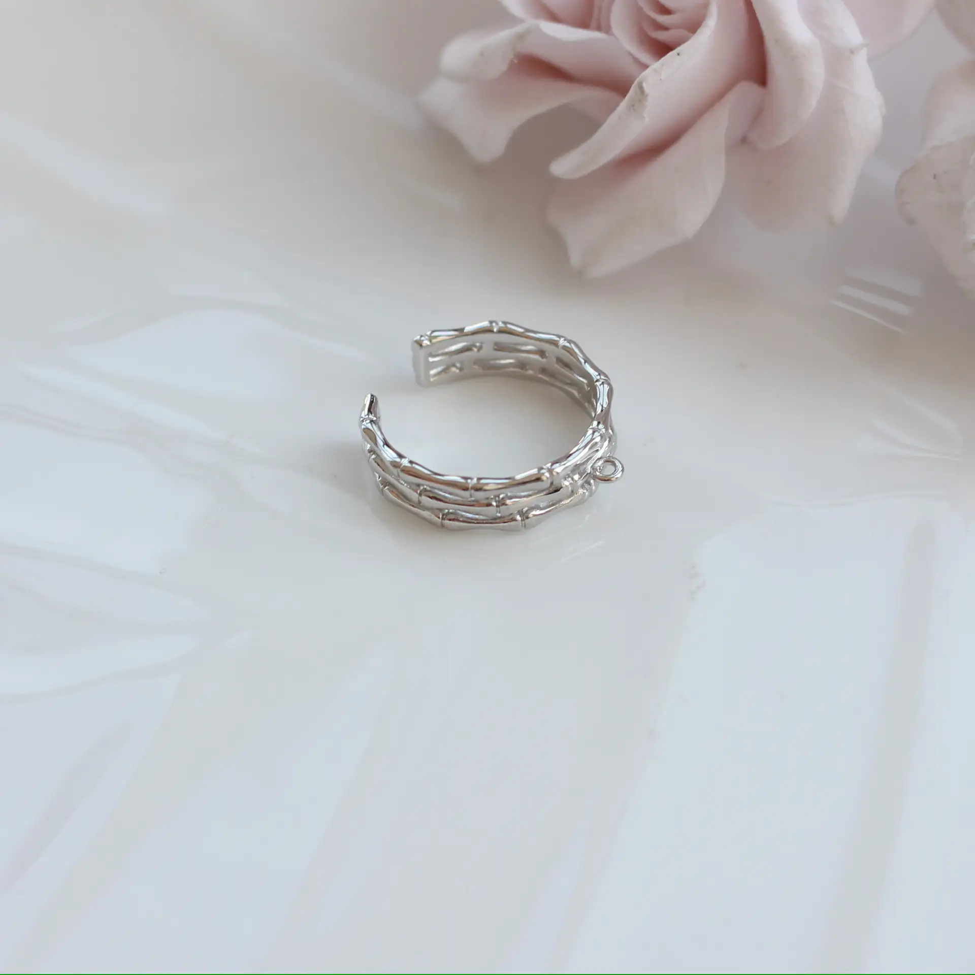 Эффектное кольцо с фактурой бамбуковых стеблей — стильная основа для создания уникальных украшений. Благодаря аккуратной петельке вы можете дополнить его подвесками, камнями или декоративными элементами, создавая каждый раз новый дизайн.