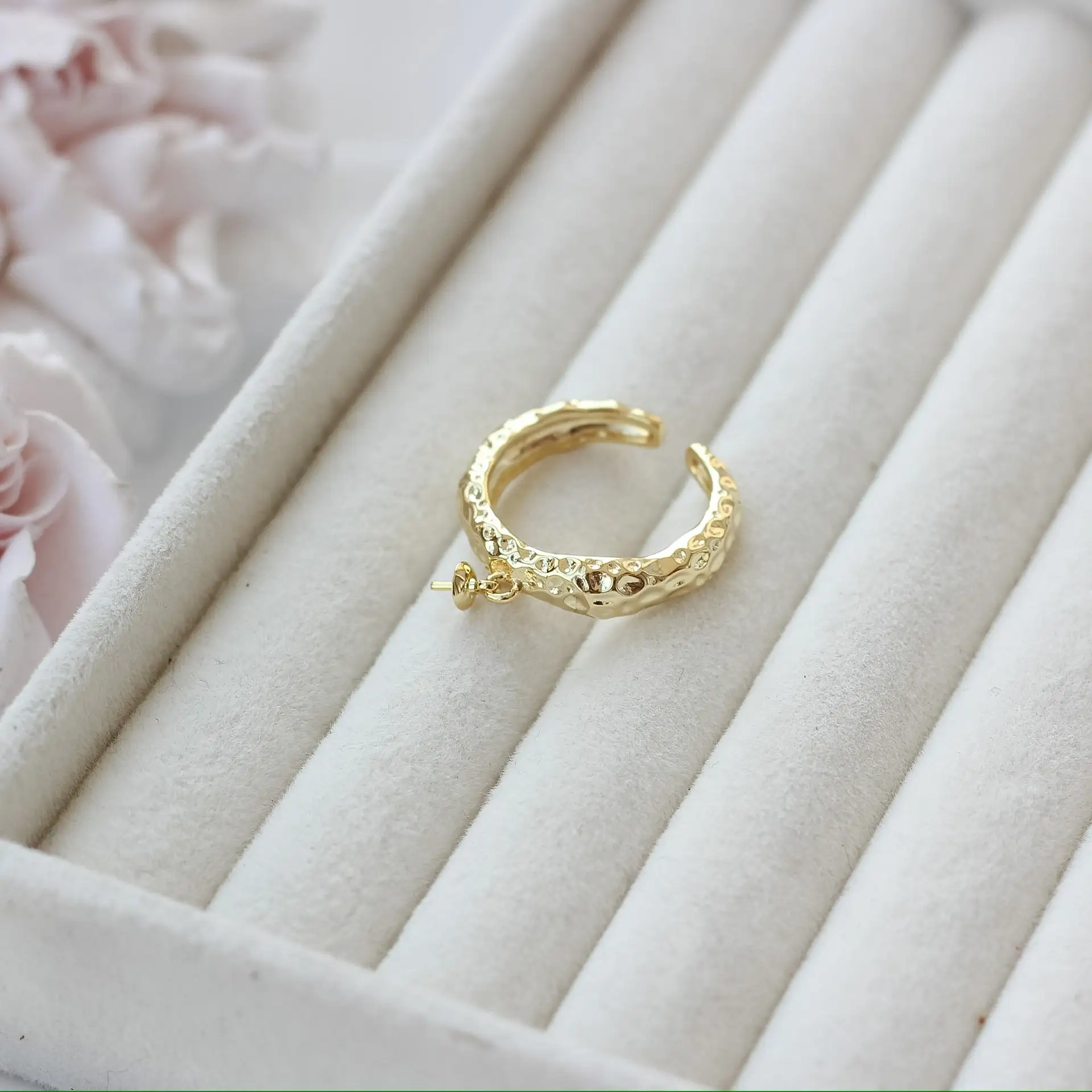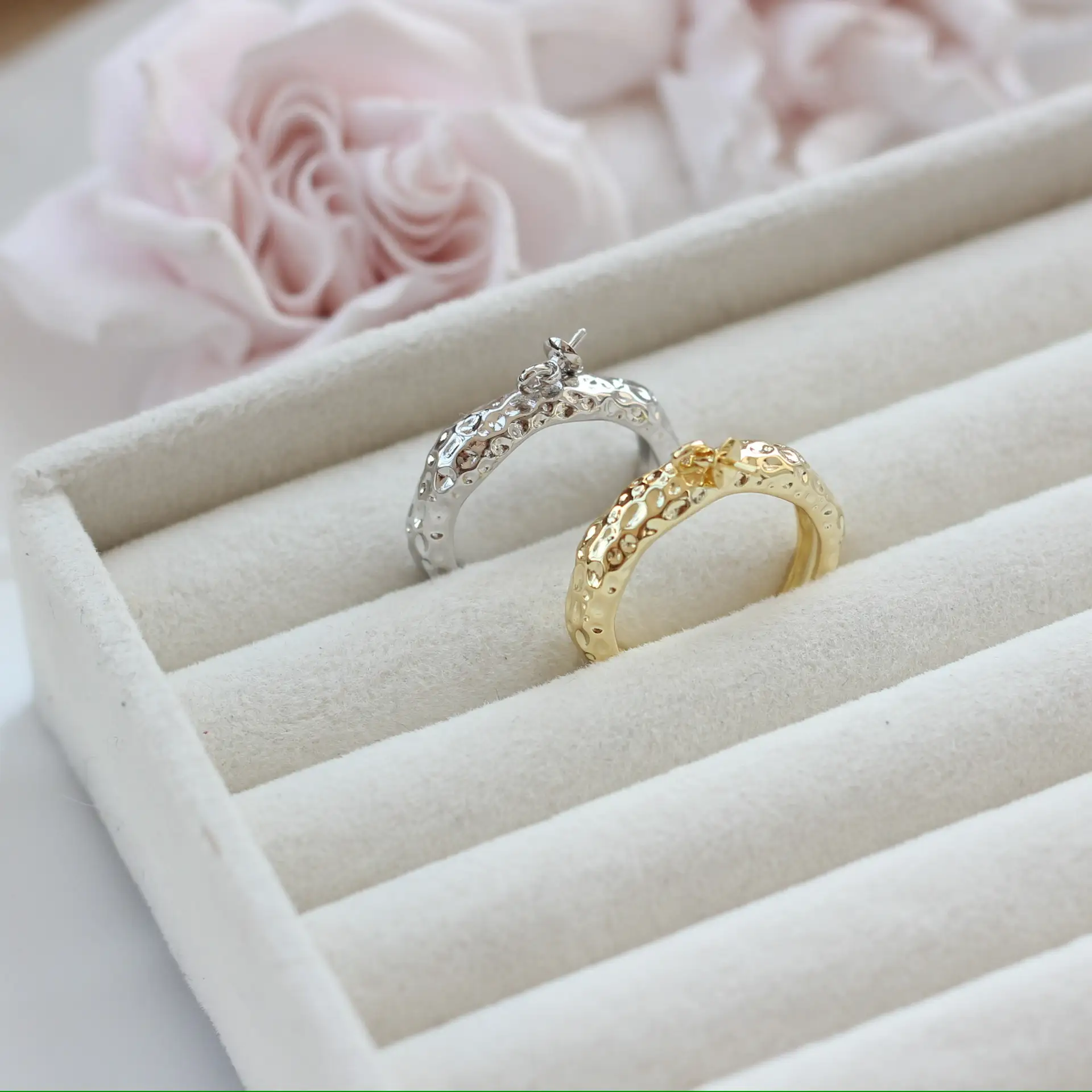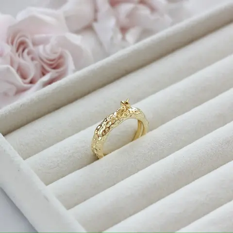 Эффектное кольцо с фактурой мятого металла — стильная основа для создания уникальных украшений. Благодаря аккуратной петельке вы можете дополнить его подвесками, камнями или декоративными элементами, создавая каждый раз новый дизайн. А штырек для вклейки полупросверленных бусин в комплекте разнообразит возможности дизайна.