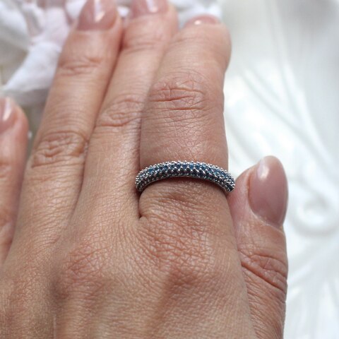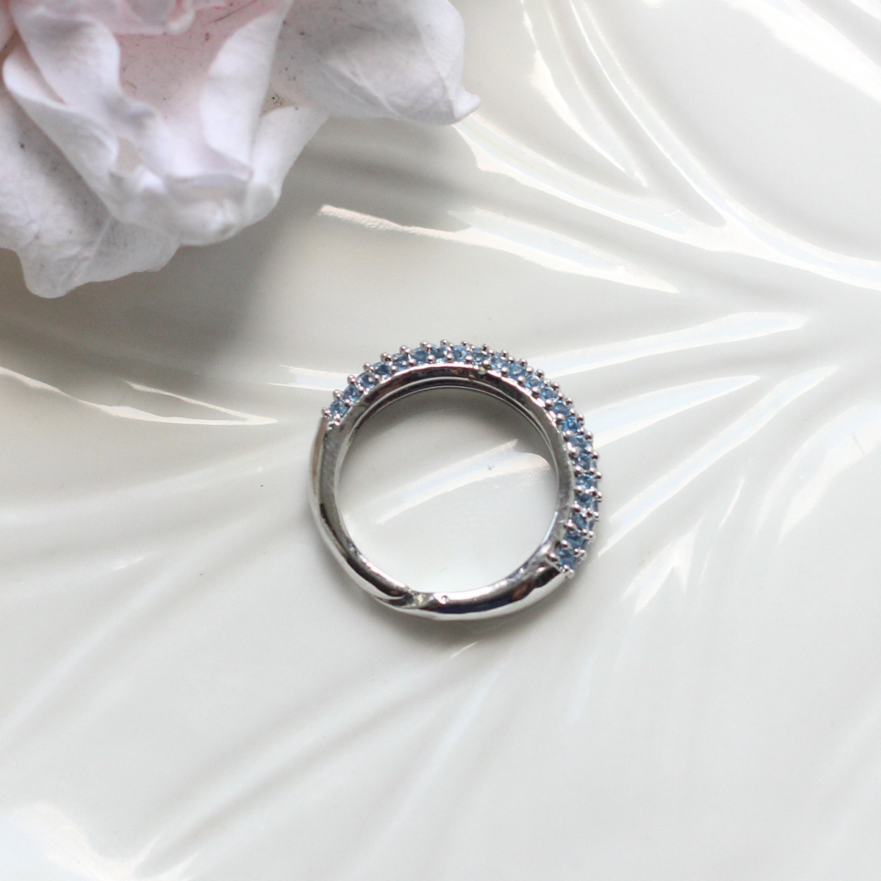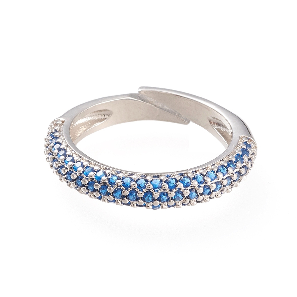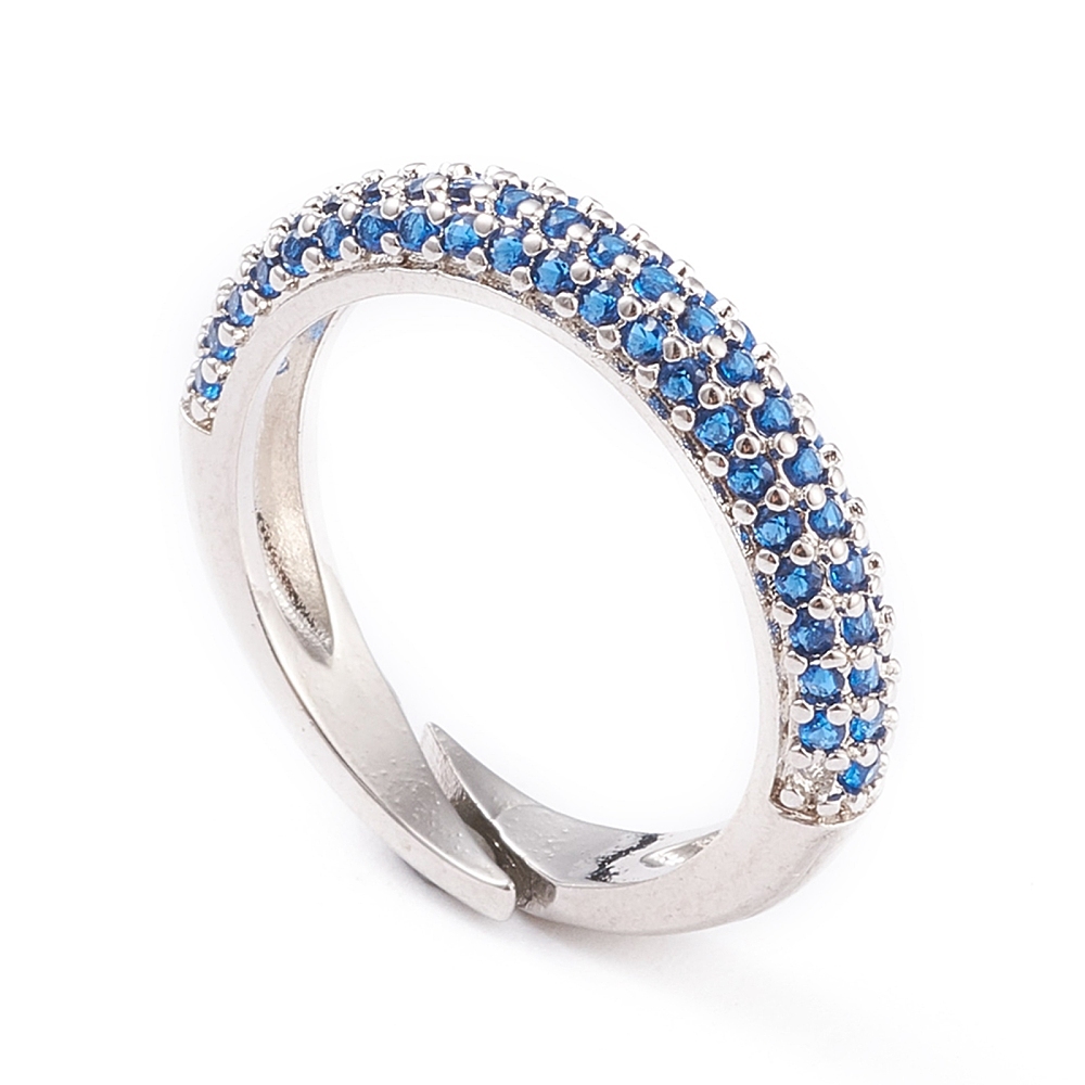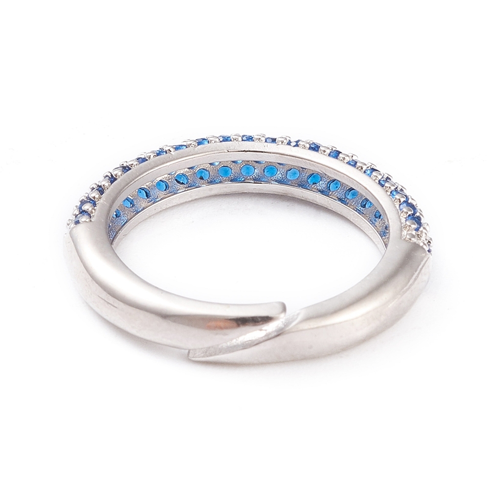 Кольцо с синими фианитами, родий Д006