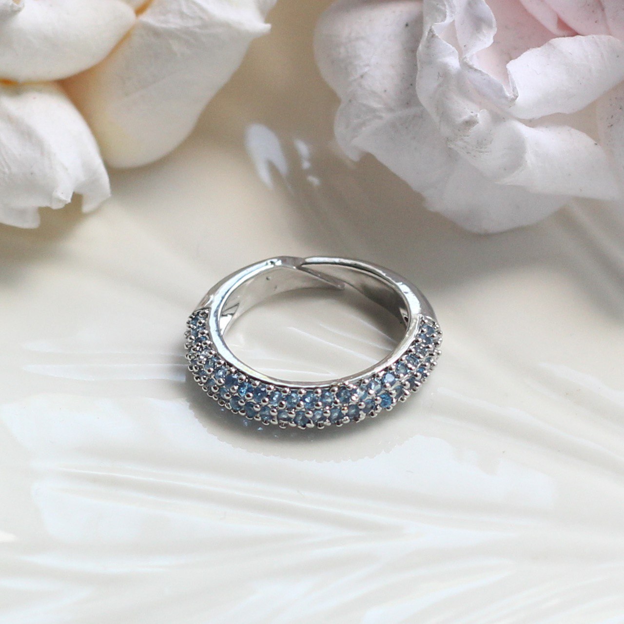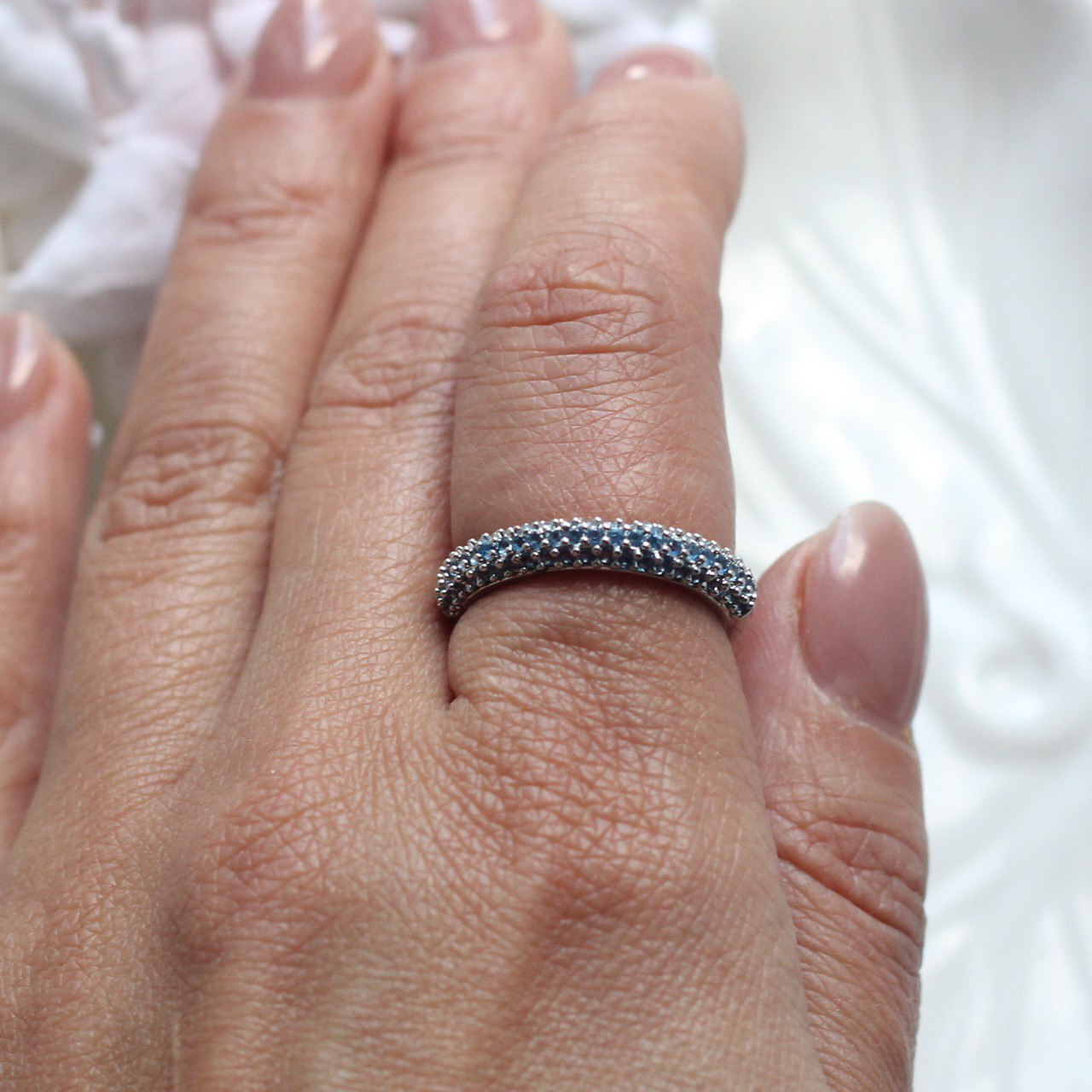 Кольцо с синими фианитами