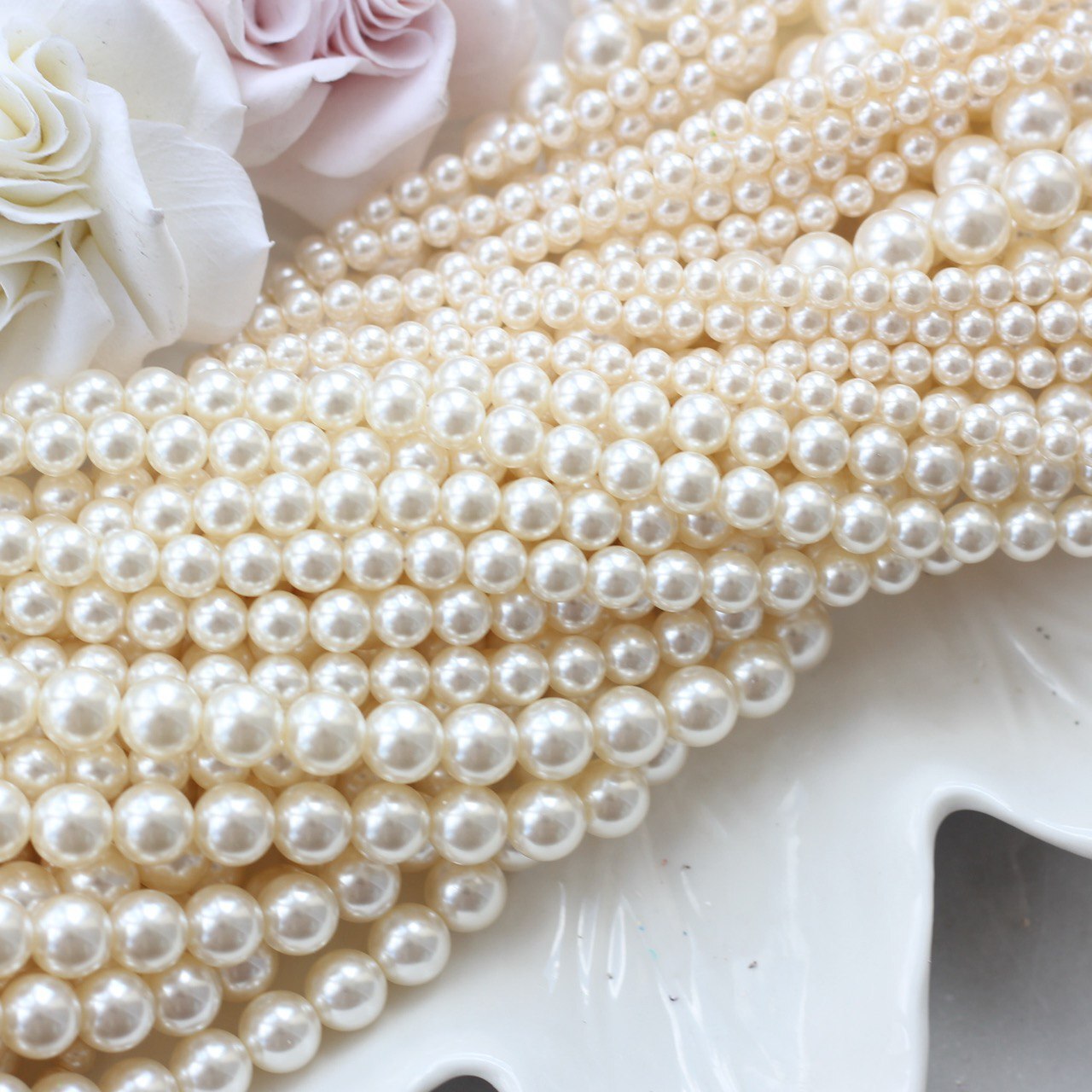 Тёплый кремовый оттенок айвори с желтоватым оттенком и мягким перламутровым блеском придаёт бусинам утончённую элегантность. Этот цвет универсален и подойдёт для множества проектов — от классических ожерелий и свадебных аксессуаров до винтажных и романтических украшений.