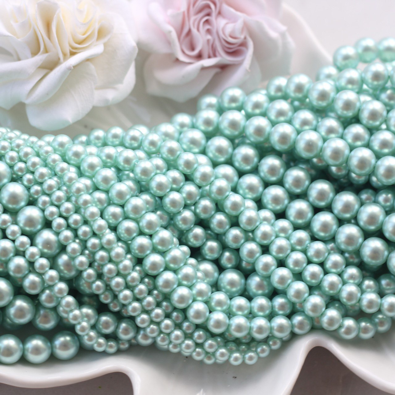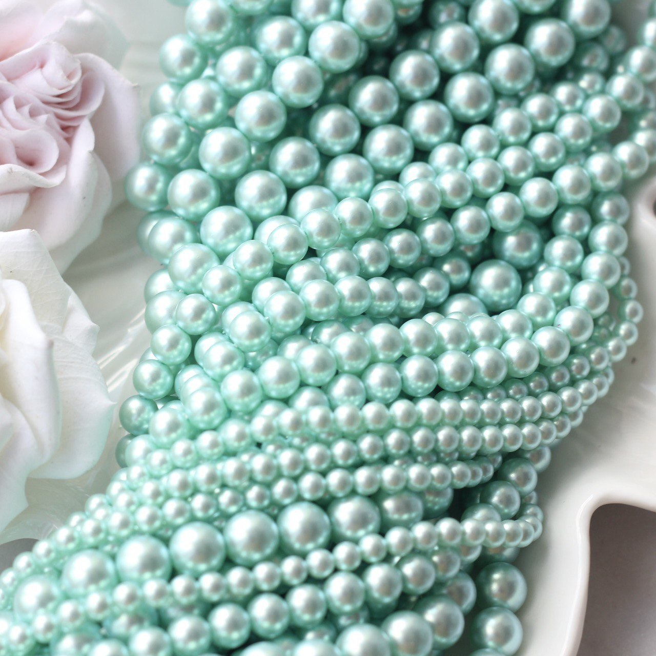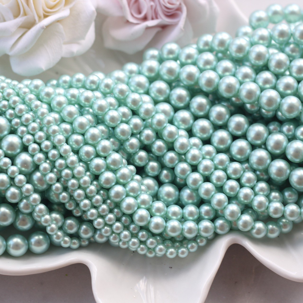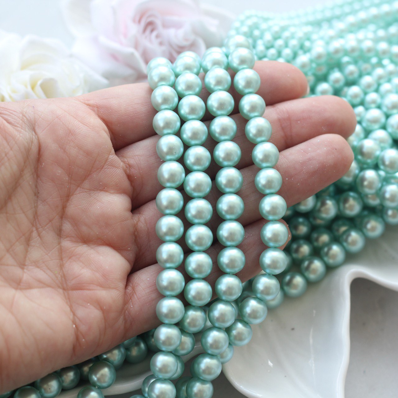 Нежный светло-зелёный оттенок с деликатным перламутровым блеском напоминает свежесть молодой листвы и прохладу летнего утра. Эти бусины добавят украшениям лёгкости и природной гармонии, подойдут для весенних и летних коллекций, аксессуаров в ботаническом и морском стиле, браслетов, колье и серёжек.
