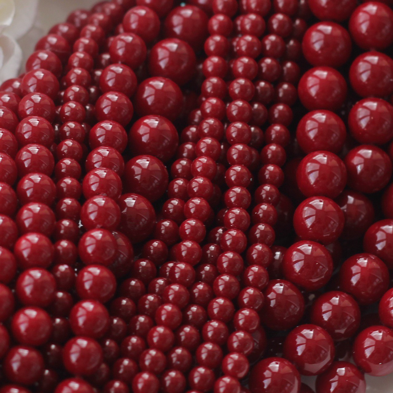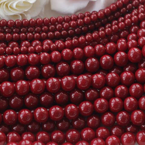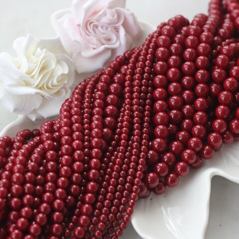 Эти гладкие акриловые бусины глубокого тёмно-бордового оттенка придают украшениям особую насыщенность и выразительность. Цвет напоминает спелую вишню или тёмное вино, добавляя композициям благородства и драматичности. Глянцевая поверхность отражает свет, создавая эффект объёма и лёгкого сияния.