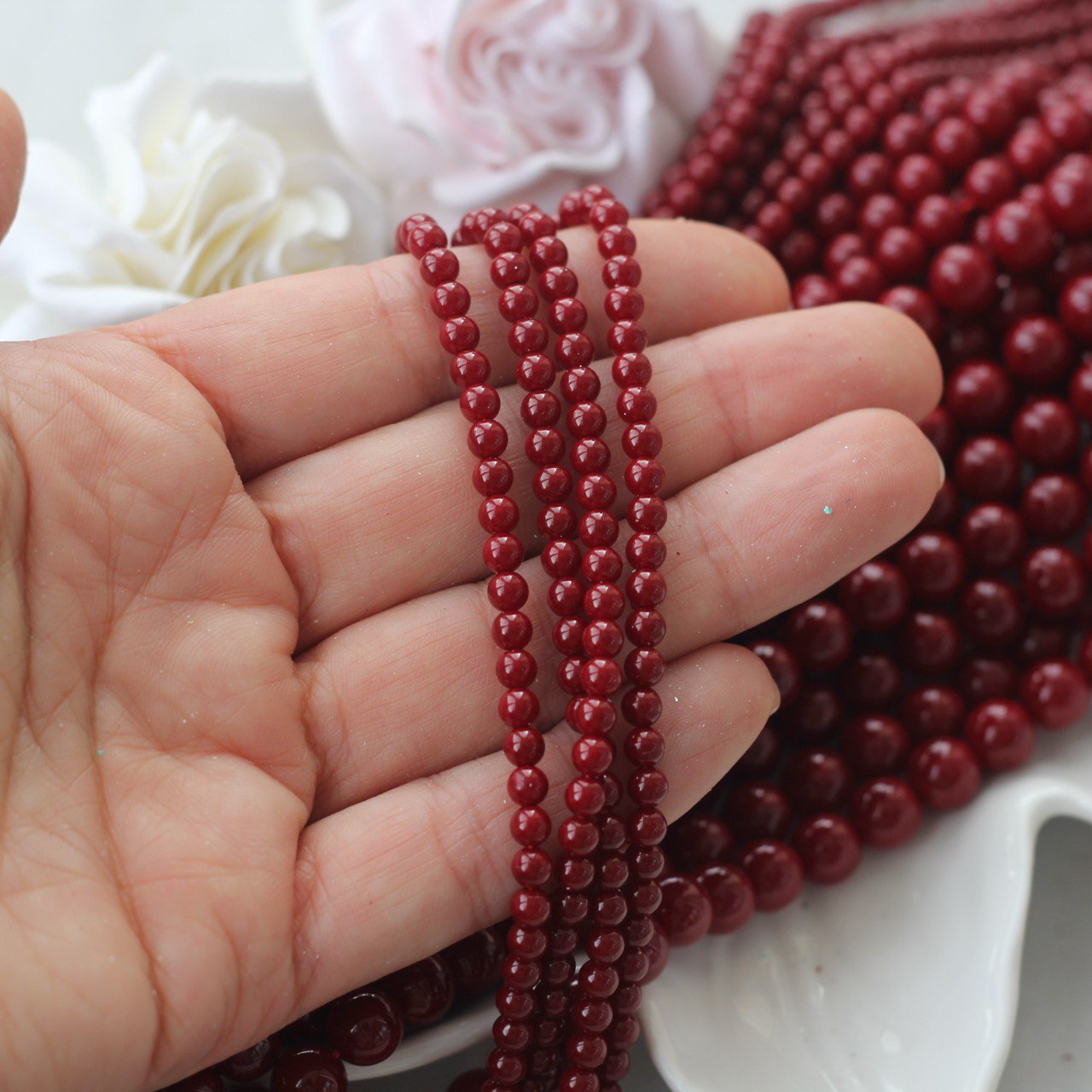 Имитация жемчуга — цвет "Тёмно-бордовый" 4 мм