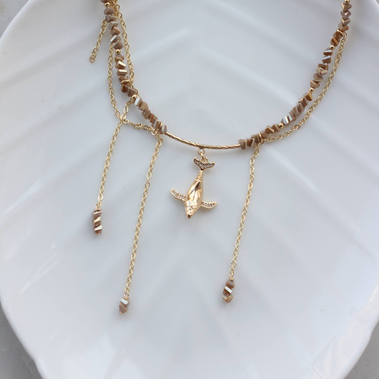 8) Подвеска Кит с фианитами 25*19 мм, позолота, П923 -1шт