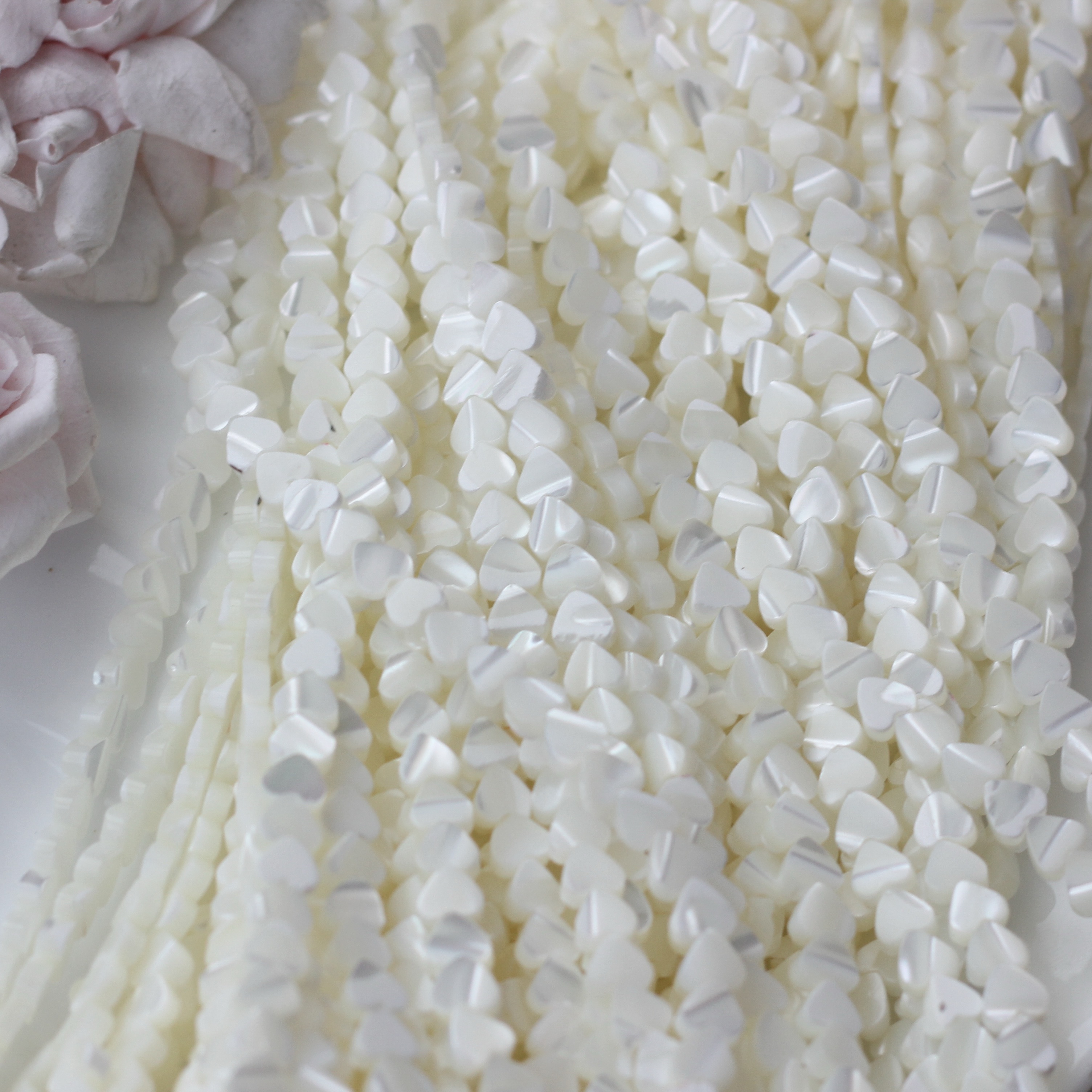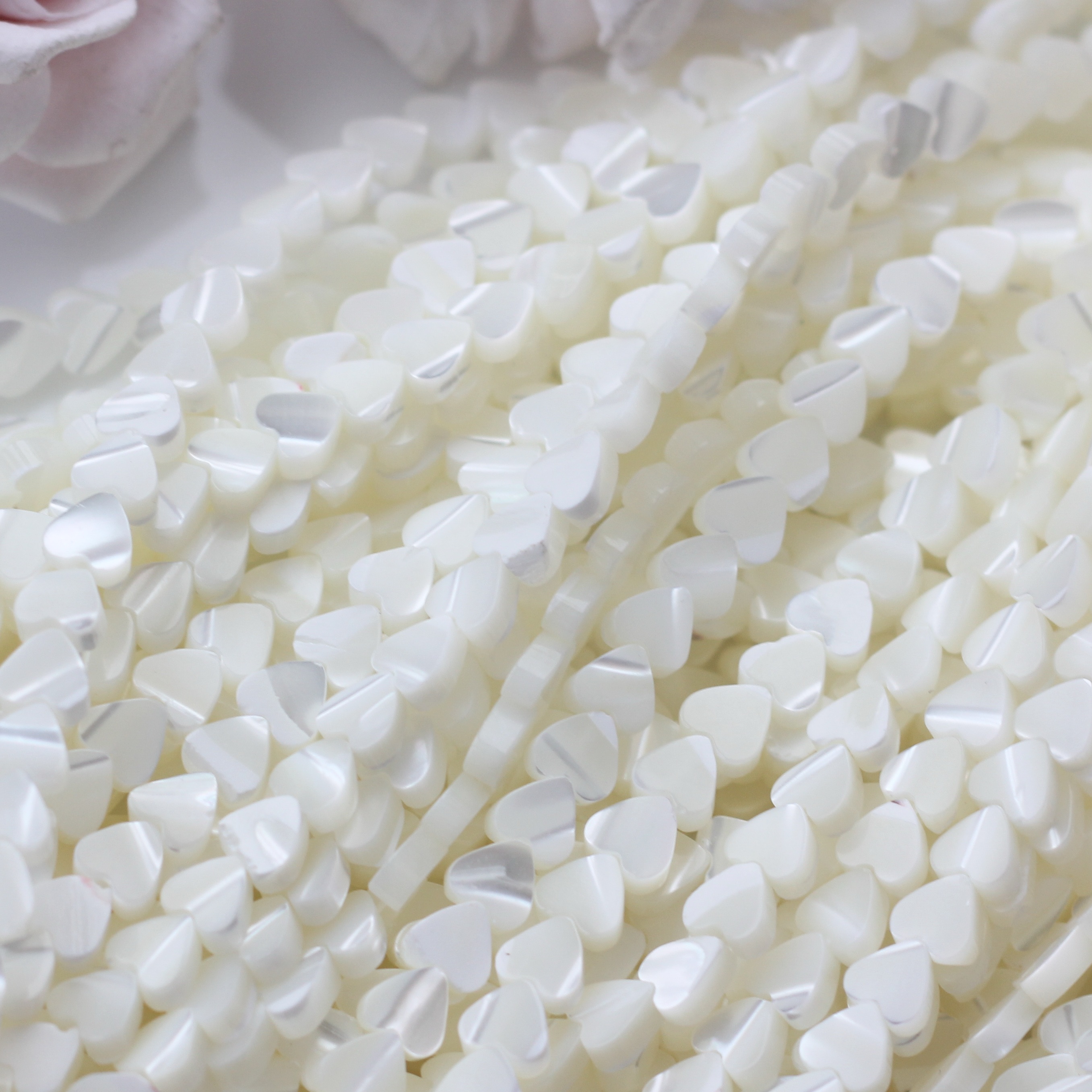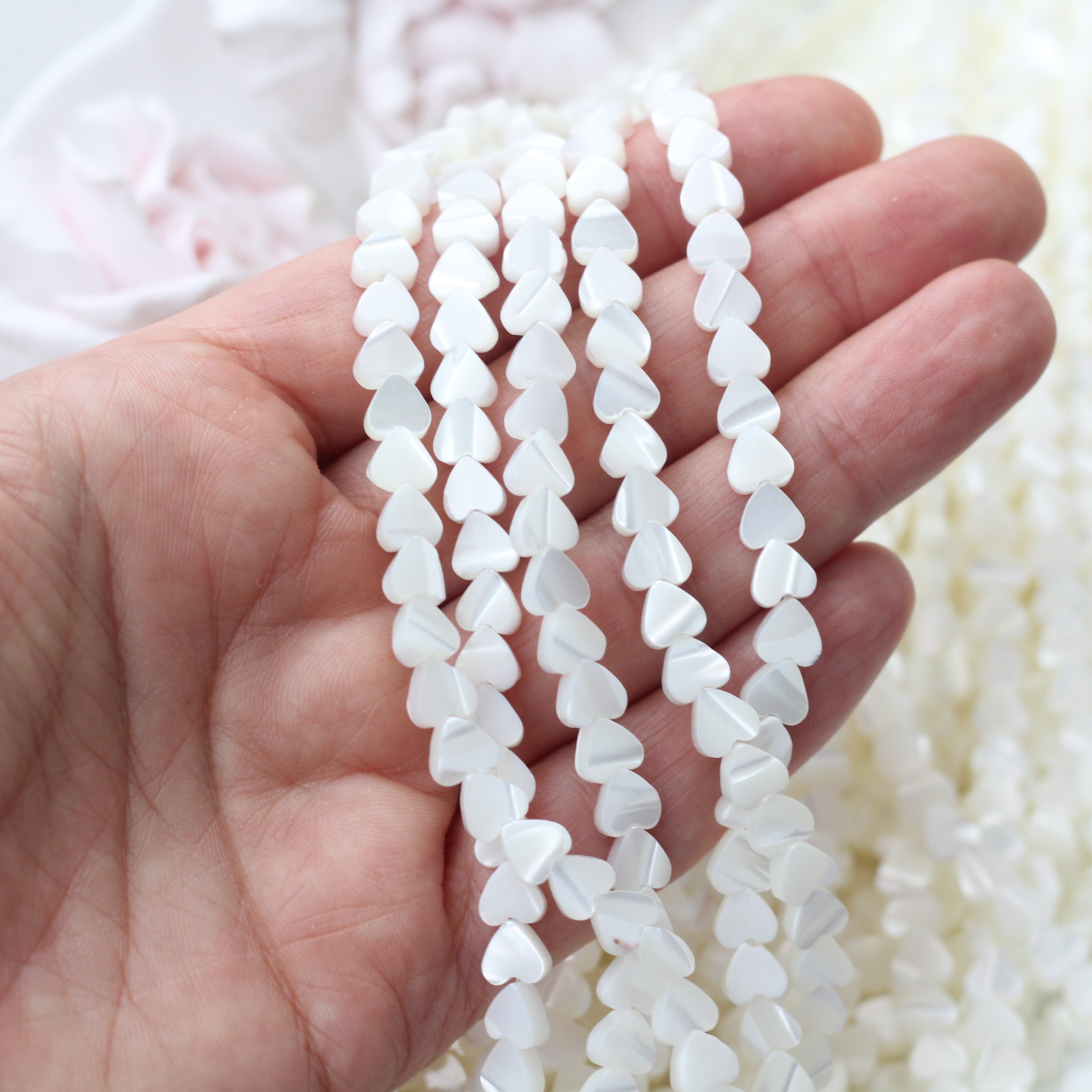 Нить бусин из натурального перламутра. Прекрасно подойдёт для создания украшений любого типа — от лаконичных чокеров до многослойных браслетов.