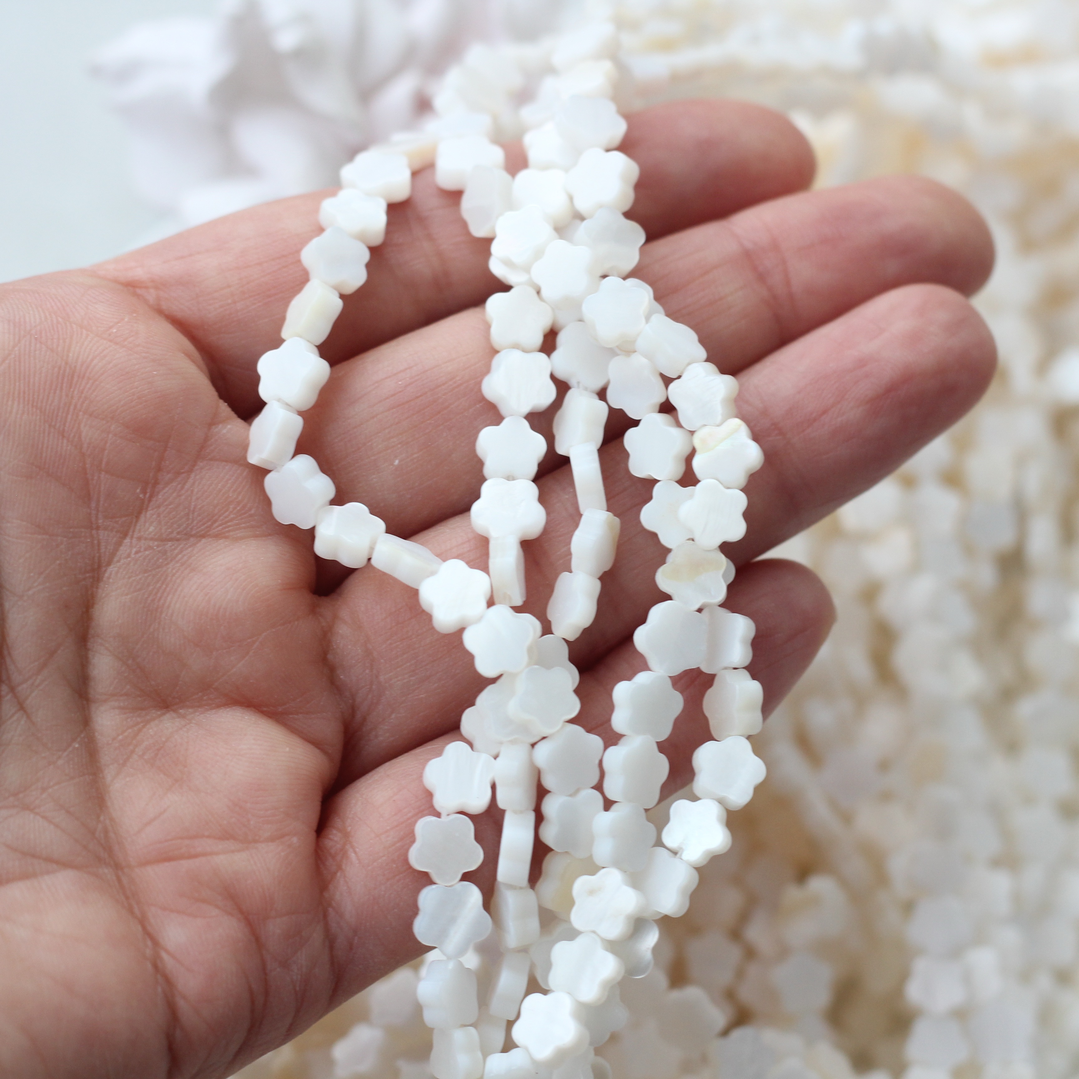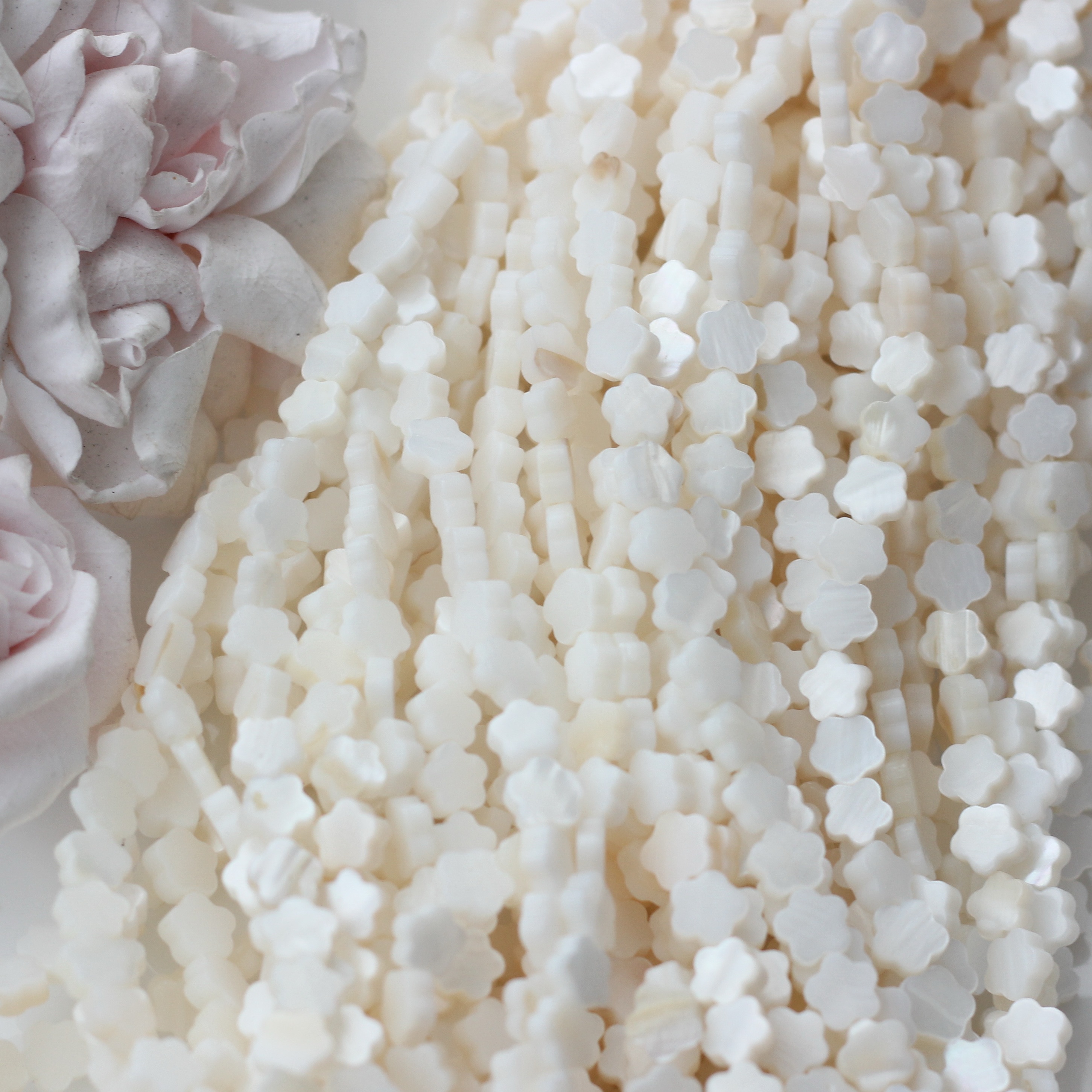Нить бусин из натурального перламутра. Прекрасно подойдёт для создания украшений любого типа — от лаконичных чокеров до многослойных браслетов.