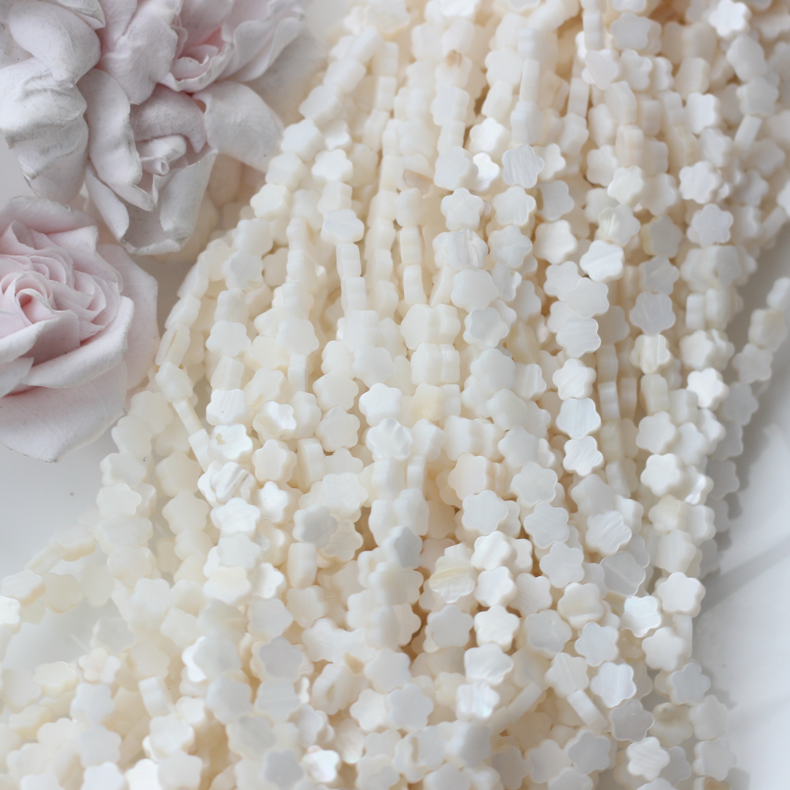 Бусины в виде цветка, гладкие на ощупь, с живой природной фактурой. Возможны лёгкие отличия в оттенке, размере и форме — это часть их естественного происхождения. Отверстия не всегда расположены идеально прямо