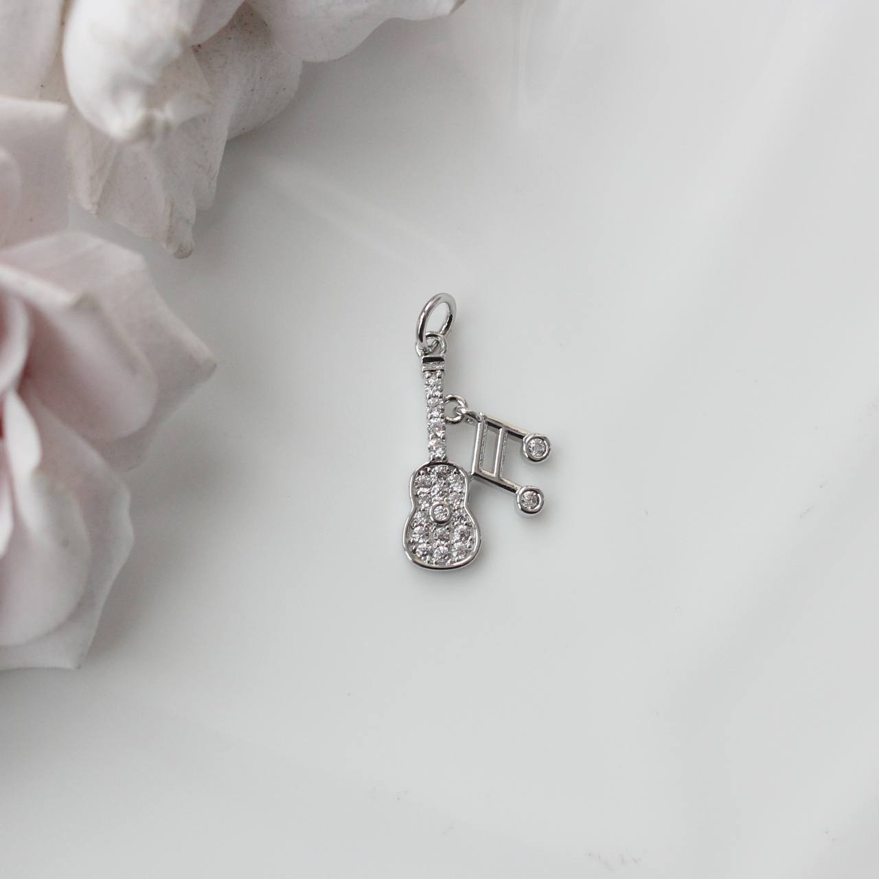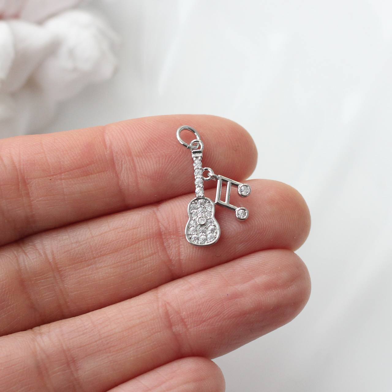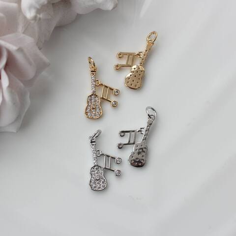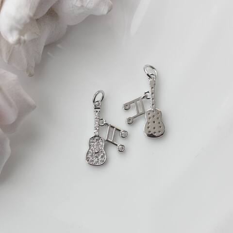 Эффектная подвеска в виде гитары с музыкальными нотами — выразительный акцент для украшений с характером. Мерцающие фианиты добавляют блеск и делают форму более объёмной и «живой», красиво отражая свет при движении.