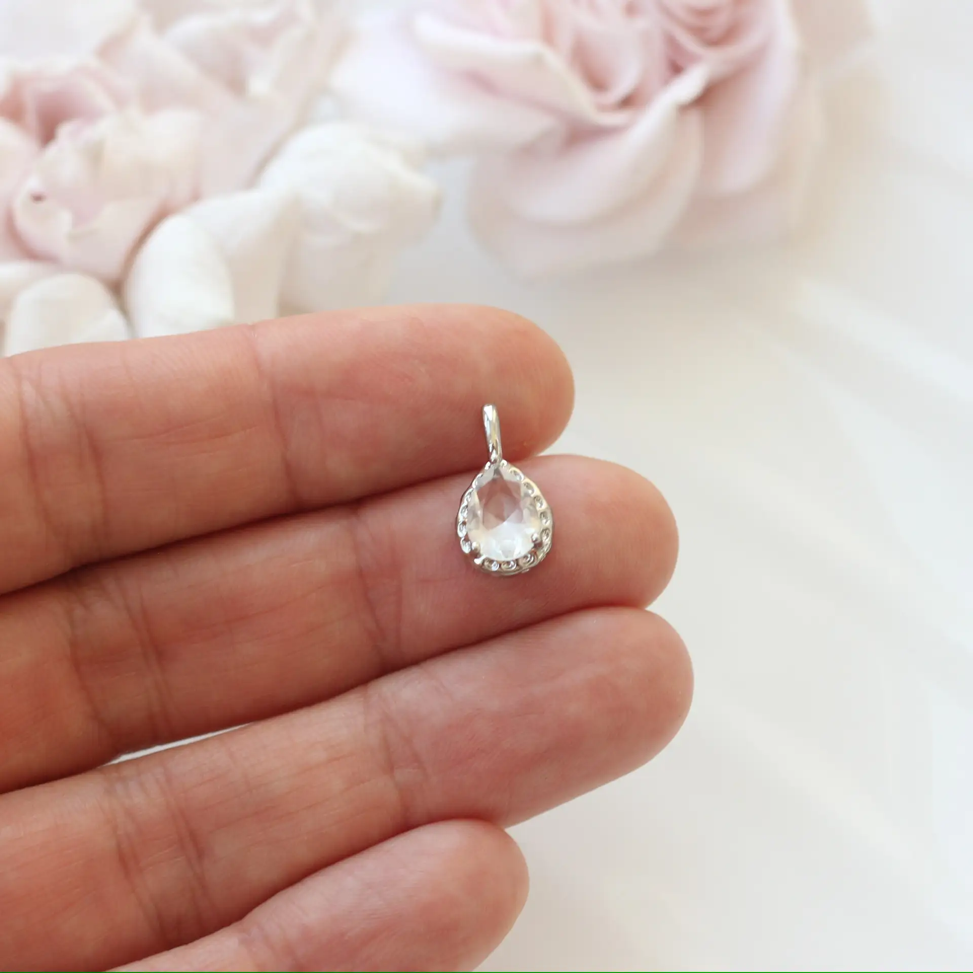 Изящная подвеска в форме капли с сияющим фианитом — утончённый элемент для создания элегантных украшений. Мягкая форма и деликатный блеск камня придают изделию лёгкость и благородство, делая его универсальным акцентом как для повседневных, так и для вечерних образов.