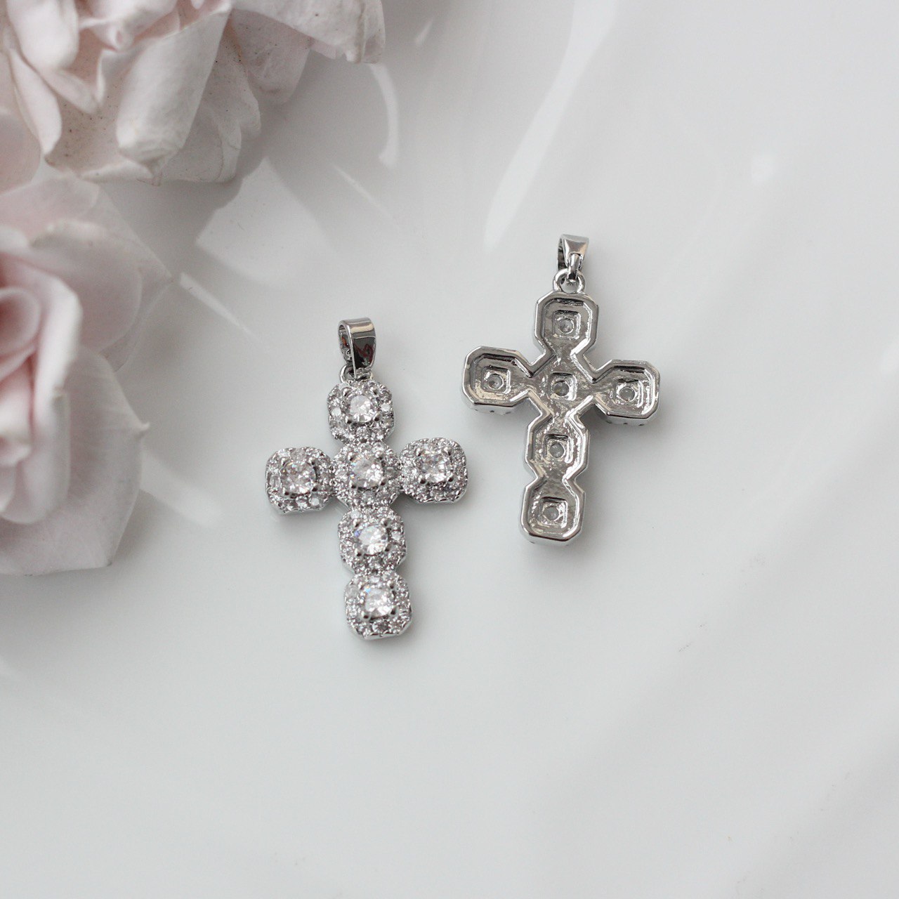 Выразительная подвеска в форме креста с сияющими фианитами — стильный и символичный элемент для авторских украшений. Чёткая геометрия формы сочетается с благородным блеском камней, создавая эффект ювелирного изделия.