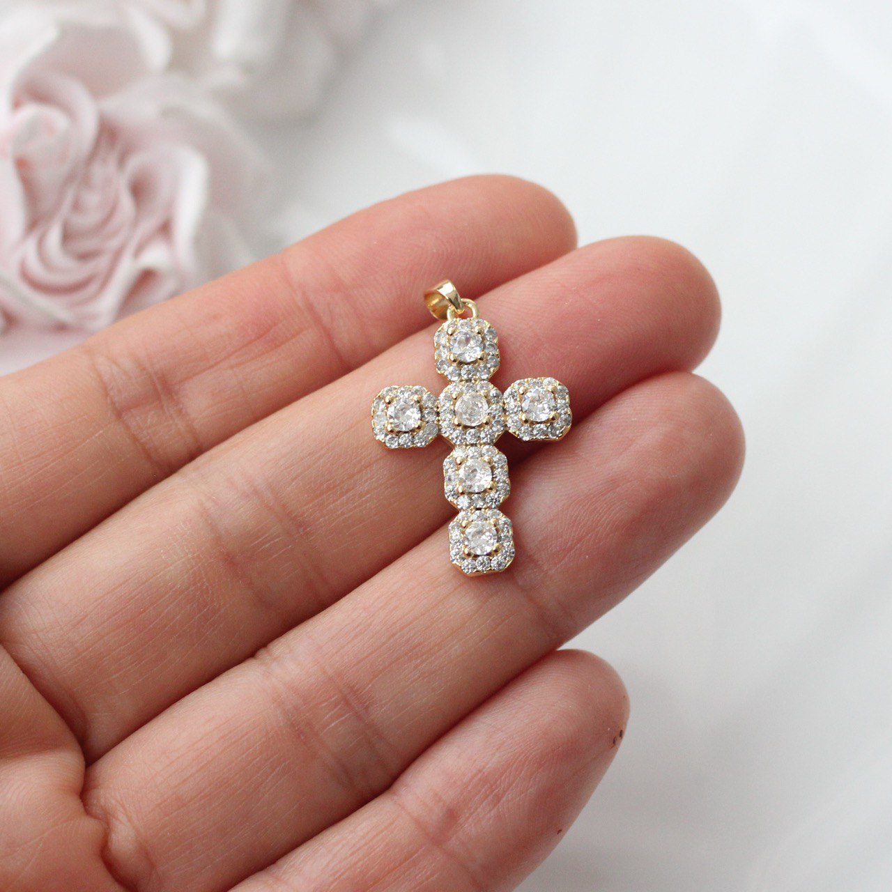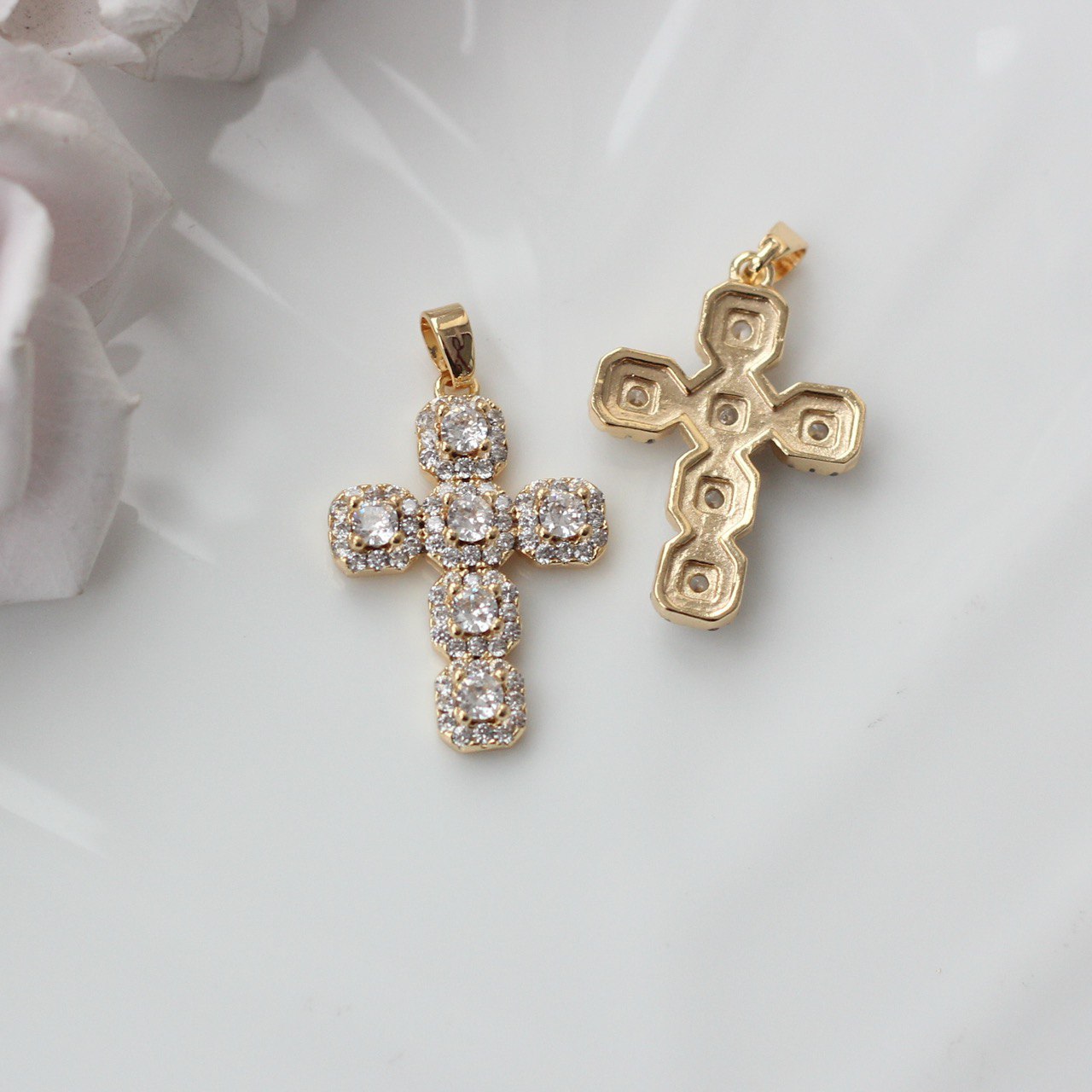 Выразительная подвеска в форме креста с сияющими фианитами — стильный и символичный элемент для авторских украшений. Чёткая геометрия формы сочетается с благородным блеском камней, создавая эффект ювелирного изделия.