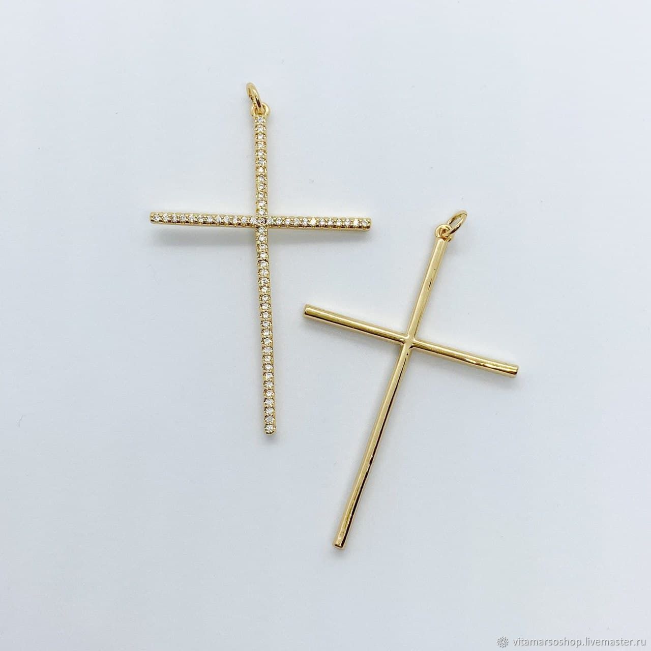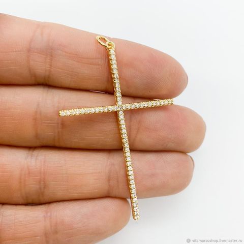 Подвеска Крестик с фианитами 55*33 мм, позолота, П890