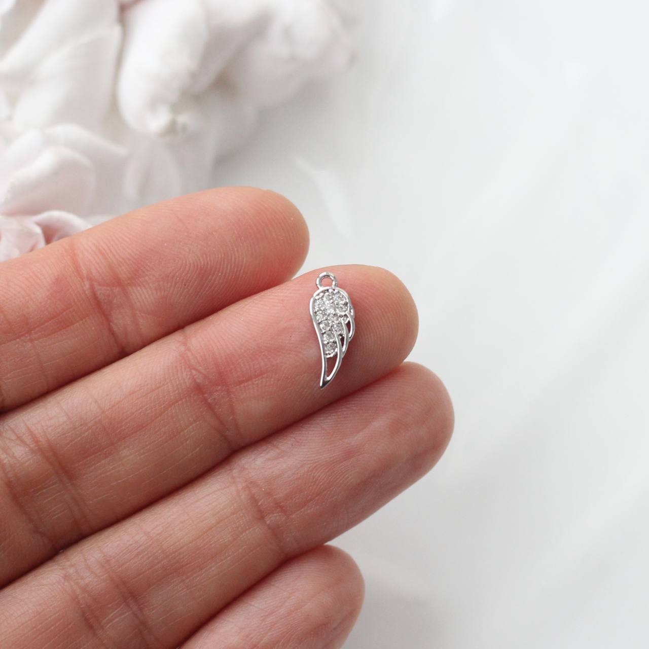 Изящная подвеска в форме ангельского крыла — символ защиты, поддержки и светлой энергии. Мерцающие фианиты подчёркивают форму пера и создают эффект мягкого сияния, делая подвеску утончённой и выразительной.