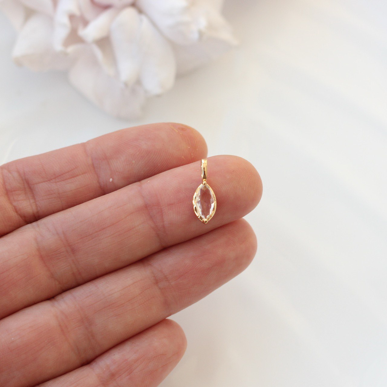 Элегантная подвеска с фианитом огранки «маркиз» — утончённый акцент для изящных украшений ручной работы. Вытянутая форма камня визуально облегчает композицию и добавляет украшению благородного сияния.