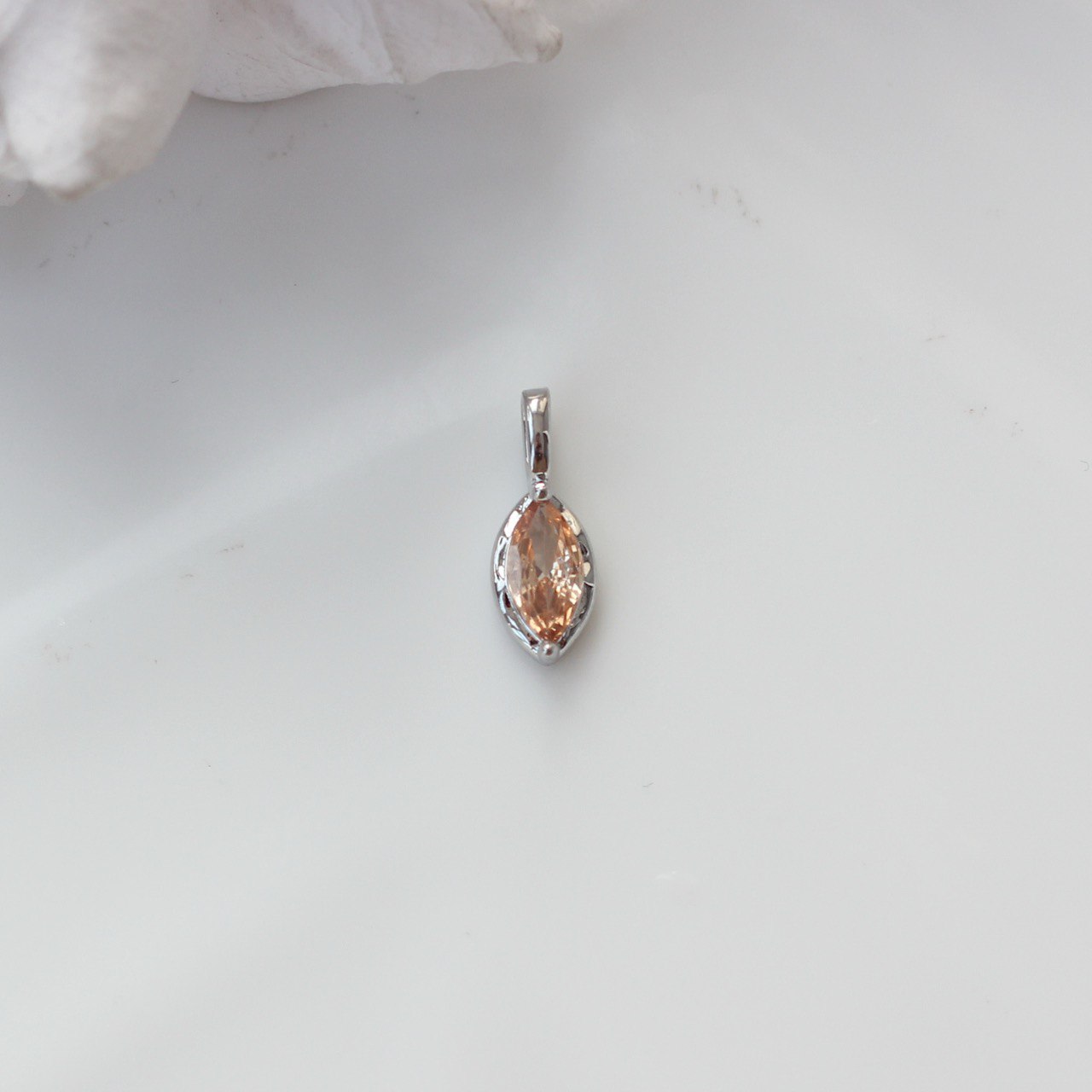 Элегантная подвеска с фианитом огранки «маркиз» — утончённый акцент для изящных украшений ручной работы. Вытянутая форма камня визуально облегчает композицию и добавляет украшению благородного сияния.