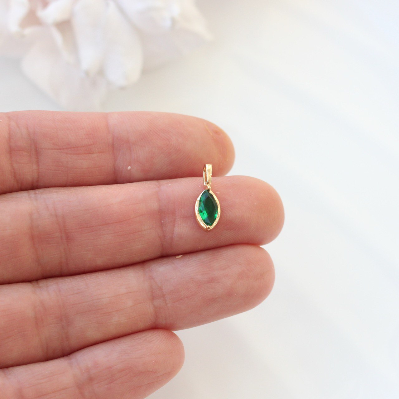 Элегантная подвеска с фианитом огранки «маркиз» — утончённый акцент для изящных украшений ручной работы. Вытянутая форма камня визуально облегчает композицию и добавляет украшению благородного сияния.