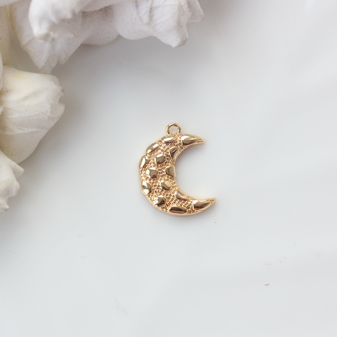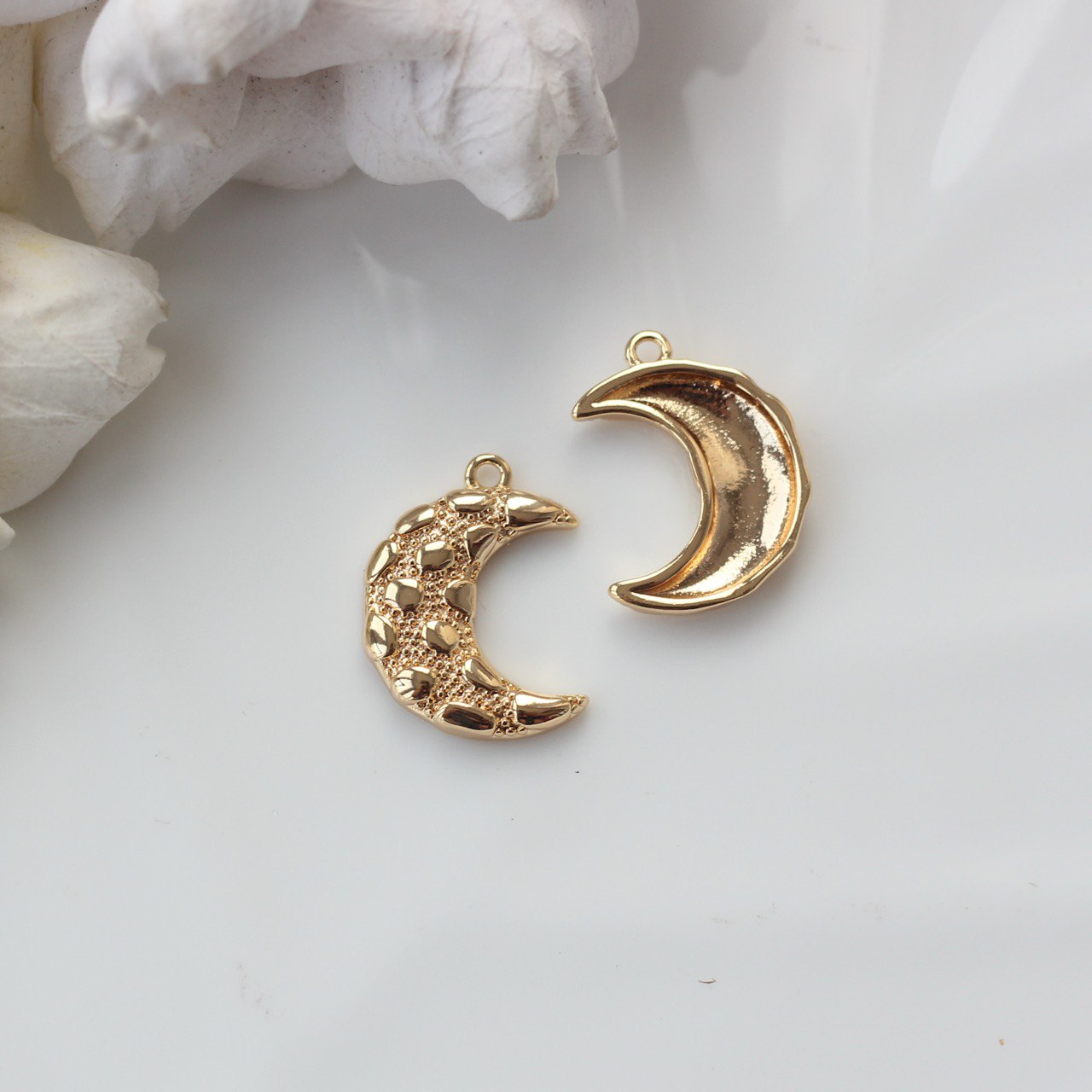 Декоративная подвеска в форме полумесяца — выразительный элемент для украшений с мистическим и романтичным настроением. Гладкая зеркальная поверхность и фактурный рельеф создают красивую игру света, подчёркивая форму и глубину изделия.