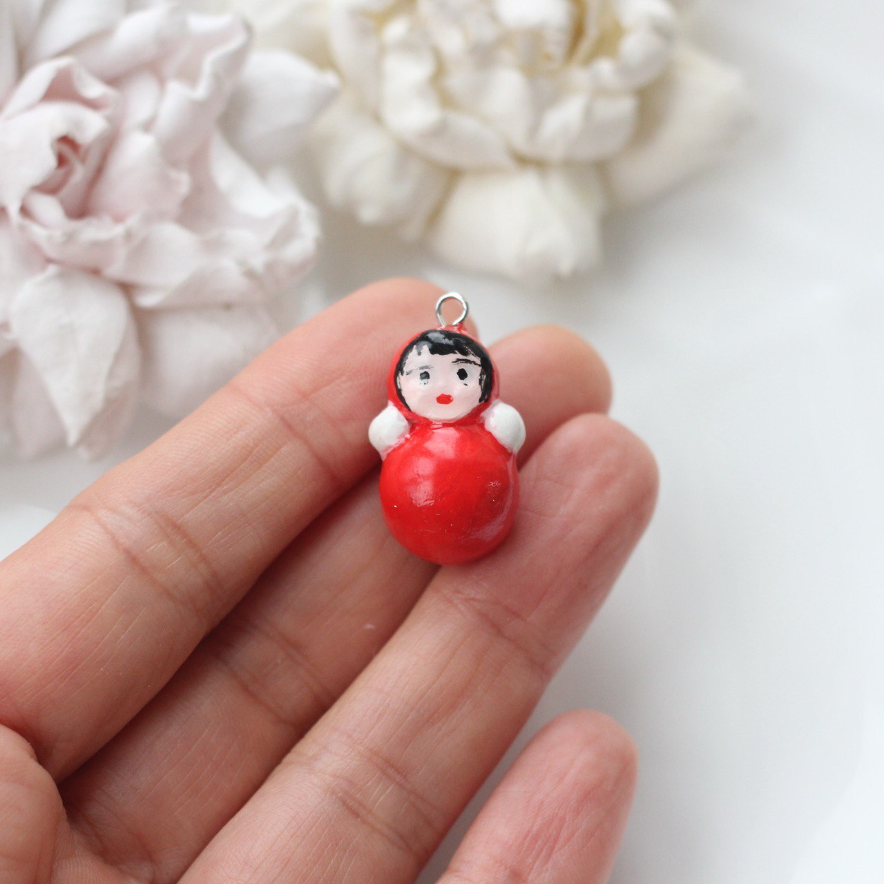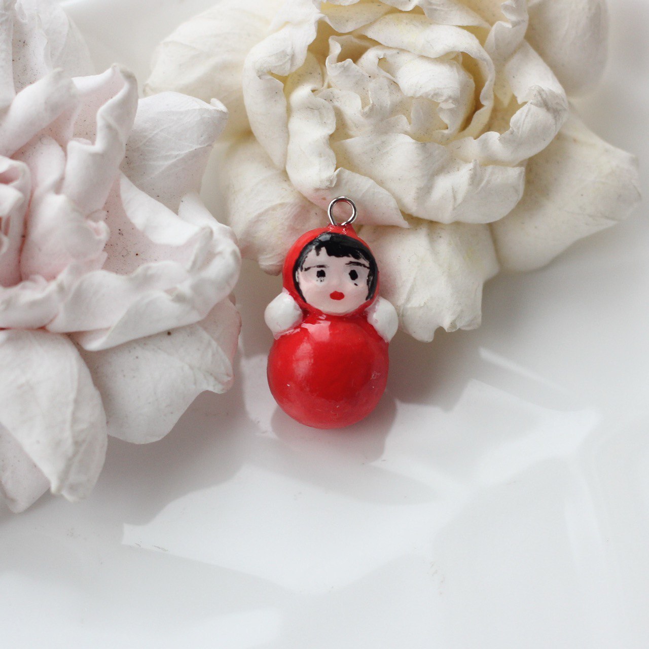 Подвеска в форме неваляшки — тёплый, узнаваемый образ из детства, выполненный с любовью и вниманием к деталям. Каждое изделие расписано вручную, поэтому каждая неваляшка обладает своим характером и настроением.