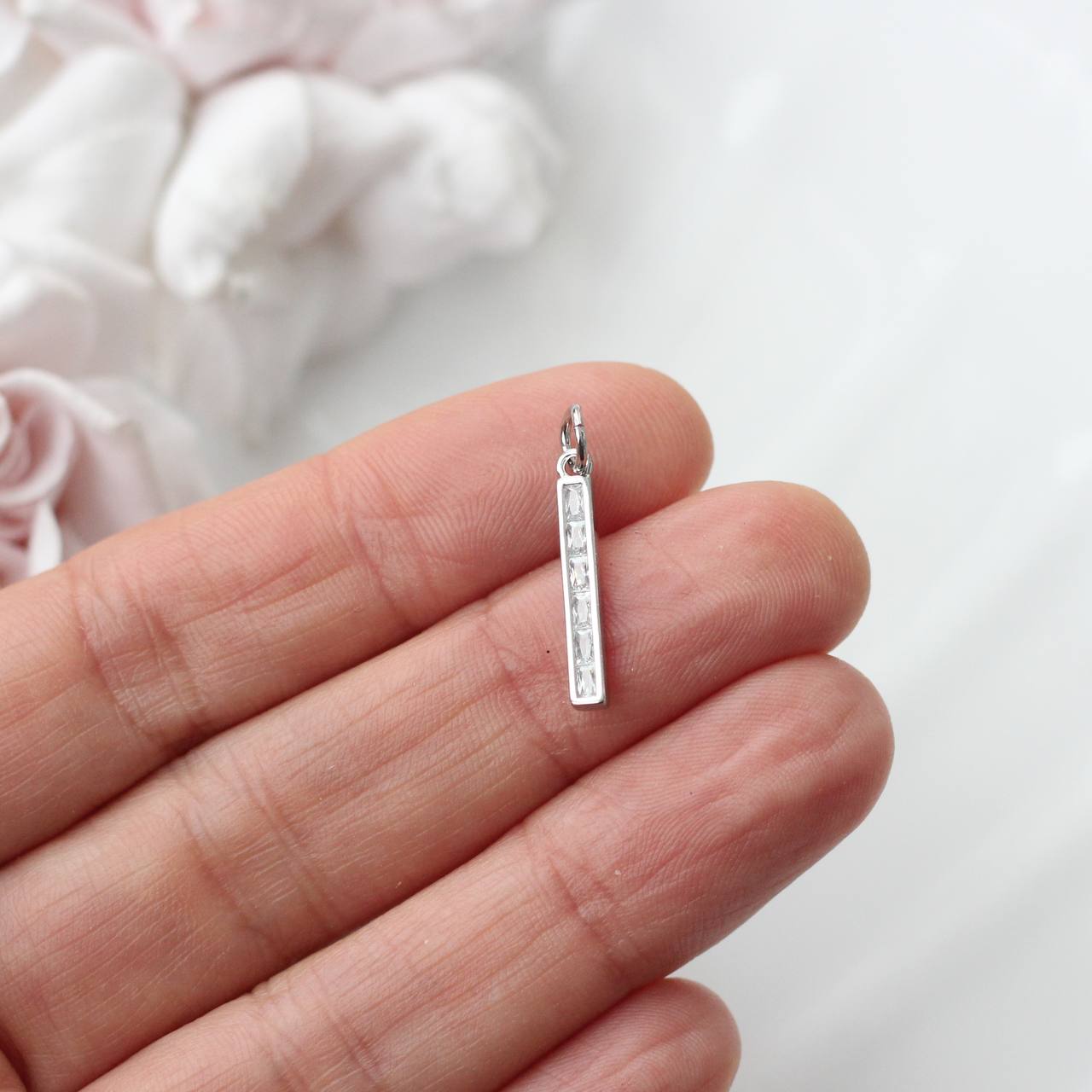 Лаконичная металлическая подвеска в форме изящной палочки — универсальный элемент для современных и минималистичных украшений. Ряд мерцающих фианитов создаёт аккуратный блеск и подчёркивает чистую геометрию формы.