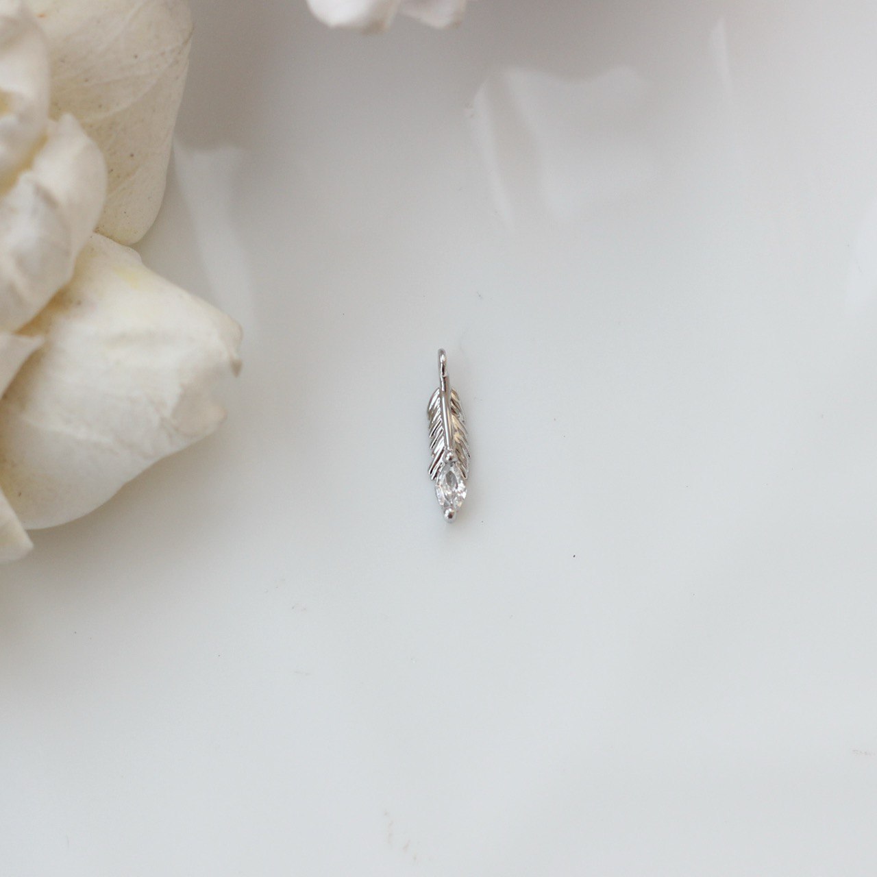 Изящная подвеска в форме пера — лёгкий, утончённый акцент для авторских украшений. Рельефная фактура металла красиво играет со светом, а прозрачный фианит добавляет мягкое сияние и ощущение воздушности.