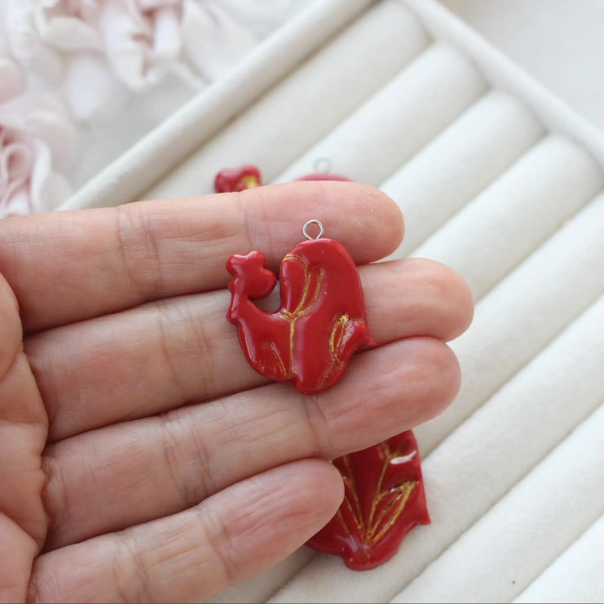 Яркая подвеска в форме петушка — выразительный элемент для создания украшений с настроением и характером. Выполнена из полимерной глины с декоративным оттиском, который придаёт изделию эффект ручной росписи и глубину фактуры.