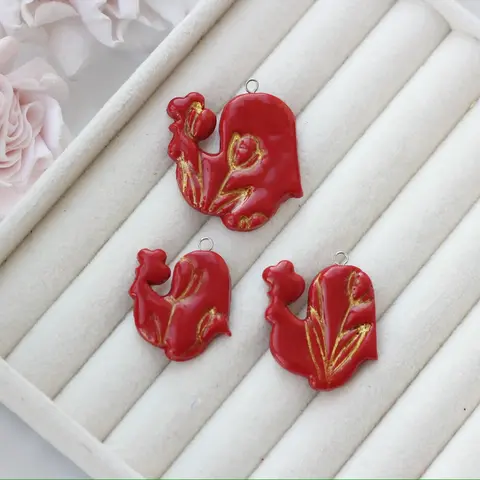 Яркая подвеска в форме петушка — выразительный элемент для создания украшений с настроением и характером. Выполнена из полимерной глины с декоративным оттиском, который придаёт изделию эффект ручной росписи и глубину фактуры.